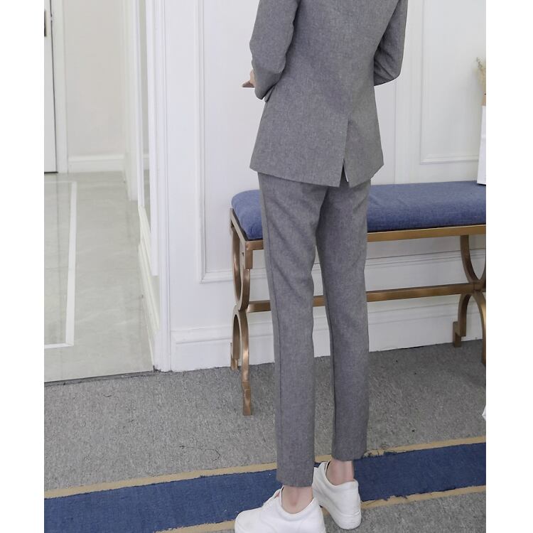 レディース ジャケット パンツ スーツ セットアップ 2点セット 上下セット 前開き アンクル丈 長袖 Vネック 襟付き 角襟 スリム 細身 ストレート フェミニン ポケット ハイウエスト コンサバ ボタン きれいめ シンプル 上品 おしゃれ かっこいい こなれ感 エレガント 存在感 フォーマル 都会的 ベーシック 清潔感 無地 春 秋 謝恩会 発表会 授業参観 会議 MTG ミーティング プレゼン 面接 オフィス ビジネス OL 通勤 就活 XS S M L XL 黒 ブラック グレー ベーシックカラー