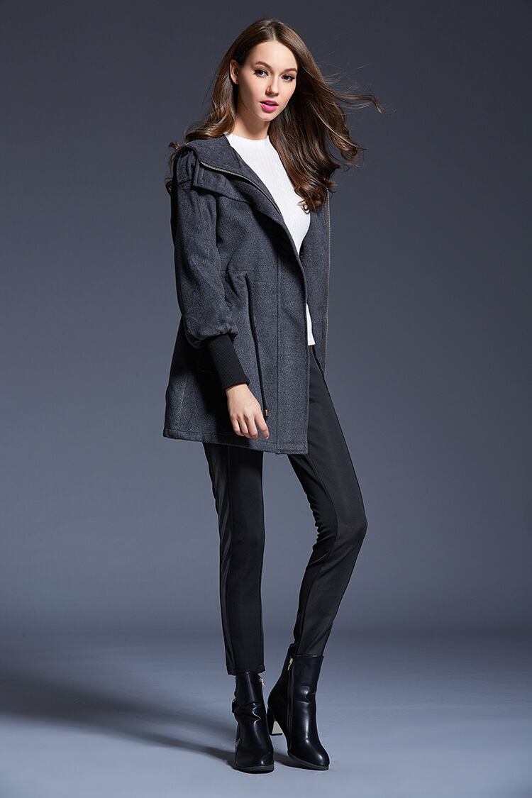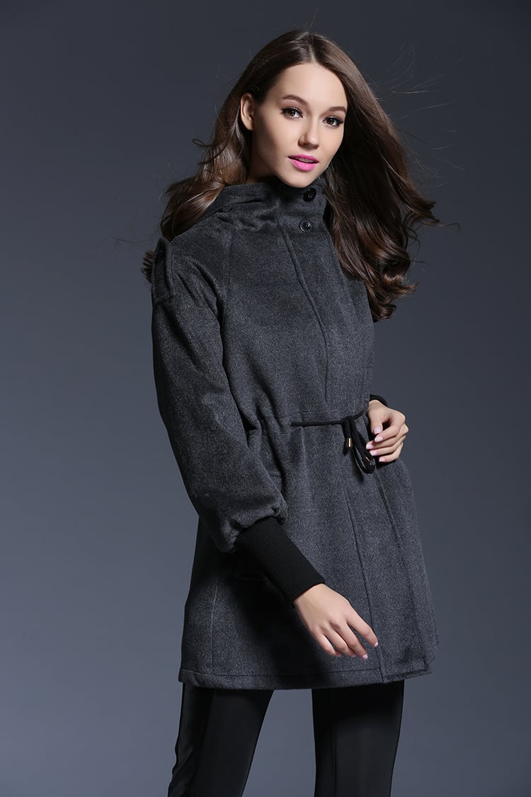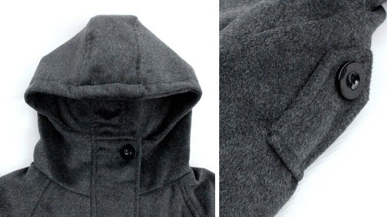 洗練されたデザインが魅力の、サイズが豊富なフード付きミディアムモッズコート。