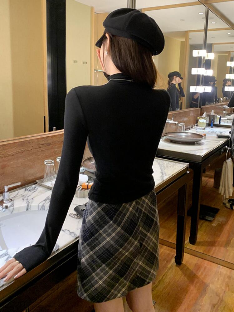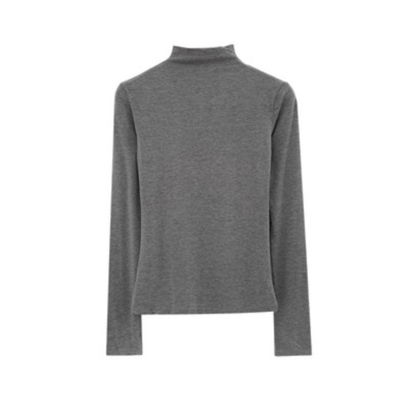モックネックとスリムフィットの組み合わせが、きれいめでシックな印象を与える長袖トップス。ストレッチ素材で快適な着心地を保ちつつ、こなれ感のあるスタイリングが楽しめます。無地で合わせやすく、カジュアルにもエレガントにも着こなせる万能アイテム。春・秋・冬の季節に活躍し、普段使いにもぴったりです。