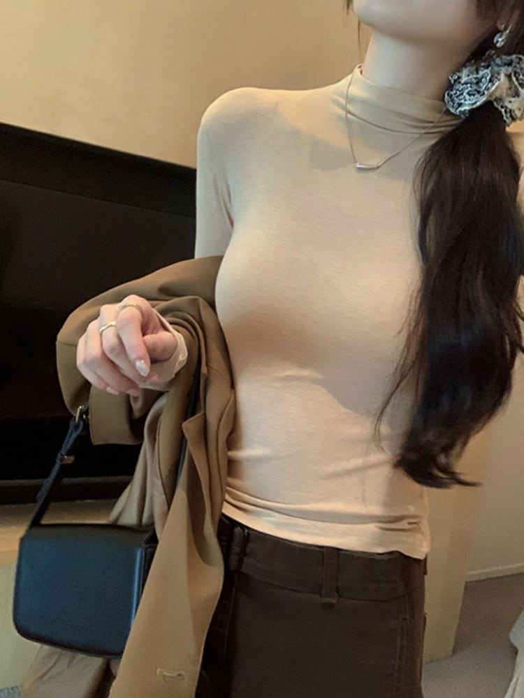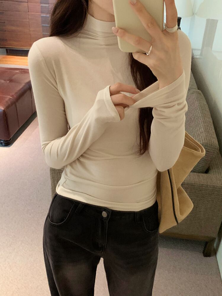 レディース トップス ロンT カットソー インナー 長袖 ハイネック モックネック ボトルネック タイト スリム 細身 ストレッチ 伸縮性 かわいい 大人可愛い きれいめ シンプル カジュアル 上品 こなれ感 ラフ エレガント 抜け感 ベーシック ナチュラル 清潔感 シック エフォートレス 無地 春 秋 冬 ママ 学生 デート お出かけ 公園 休日 韓国 オルチャン 楽ちん 普段使い 着回し 清楚 定番 ボディコンシャス S M L XL ホワイト ブラック グレー ピンク アプリコット オートミール
