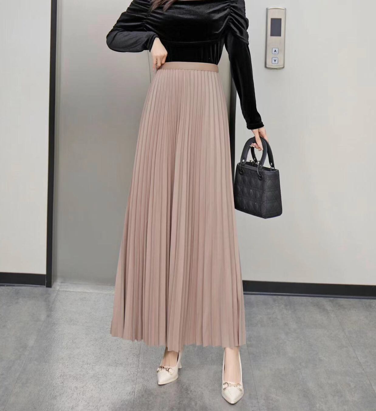 歩くたびに優雅に揺れるプリーツが印象的なロングスカートです。細かく施されたプリーツは、繊細で女性らしい雰囲気を演出します。ウエストはゴム仕様で、ストレスフリーな着心地を実現。シンプルながらも存在感があり、着こなしの主役になります。フェミニンなブラウスと合わせてきれいめに、ニットと合わせて上品なカジュアルスタイルに。幅広いテイストのコーディネートが楽しめる、万能なアイテムです。豊富なカラーバリエーションで、お好みの色を選べます。