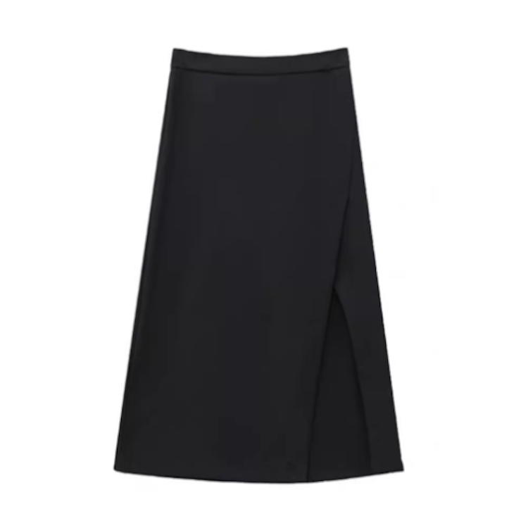 広がるフレアスカートと、さりげないスリットが抜け感をプラスし、シンプルながらも都会的でこなれた雰囲気に仕上げてくれます。軽やかな無地デザインなので、カジュアルにもきれいめにも合わせやすく、幅広いスタイルにマッチ。