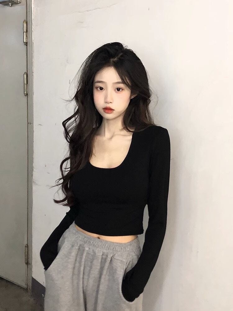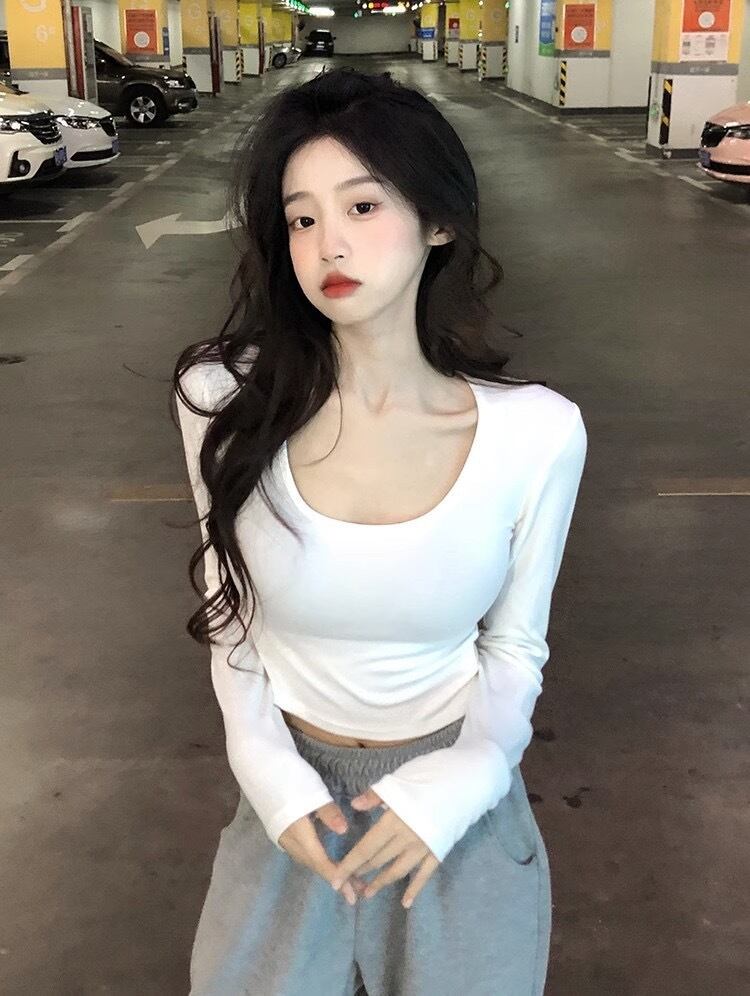 レディース トップス カットソー Tシャツ ショート クロップド丈 長袖 Uネック タイト スリム 細身 ストリート カジュアル かっこいい こなれ感 スポーティー 個性的 クール 主役級 存在感 ワイルド セクシー 無地 春 秋 冬 ロングシーズン 学生 デート お出かけ 女子会 休日 ショッピング コンパ ヨガ ピラティス 重ね着 韓国 オルチャン 脚長 普段使い 着回し トレンド 流行 インスタ映え スタイルアップ M L XL 2XL 大きいサイズ ビッグ 白 ホワイト 黒 ブラック 大人カラー