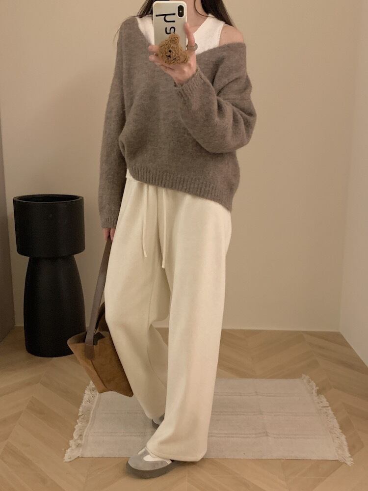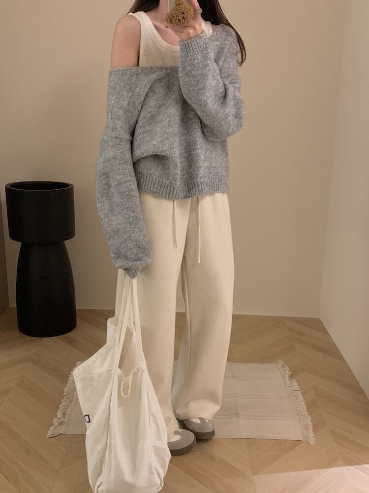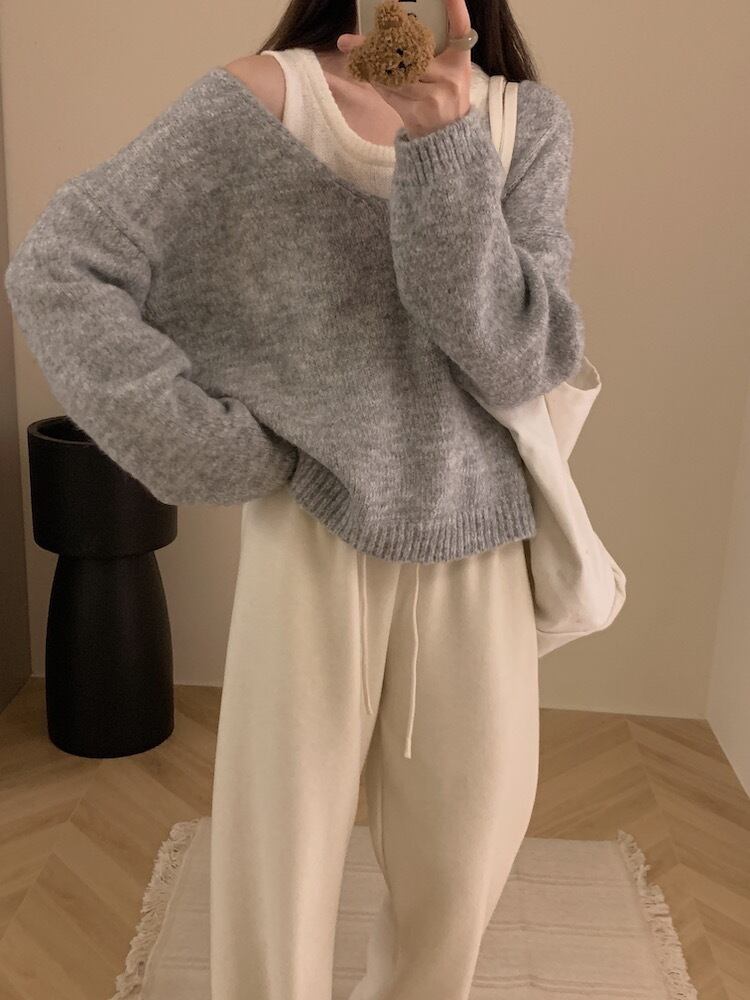 Vネックのルーズニットとオーバルネックのタンクトップが組み合わさった2点セットは、重ね着するだけでエフォートレスなスタイルが完成。モヘアタッチの柔らかな風合いが秋冬らしい温もりを感じさせ、ゆったりとした着心地でリラックスした時間にもぴったり。グレー、アプリコット、キャメルのシックなカラー展開で、普段使いからお出かけまで幅広く対応。定番ながらも個性を感じる、毎日頼れるアイテムです。