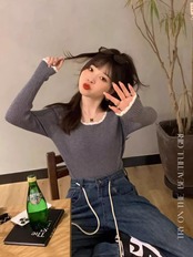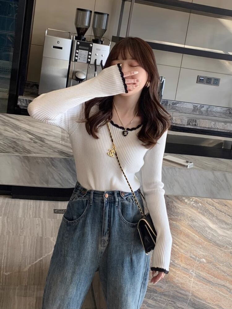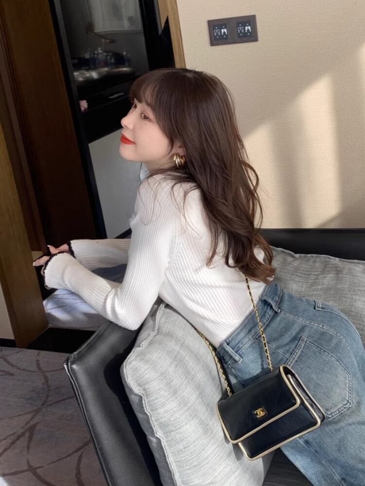 ガーリーな魅力を引き立てる、韓国風リブニットソー