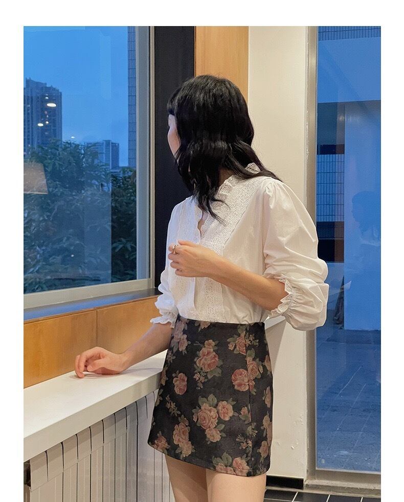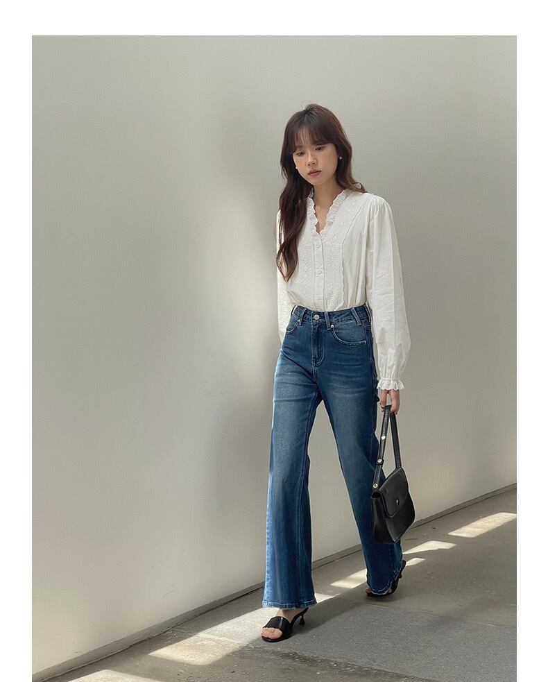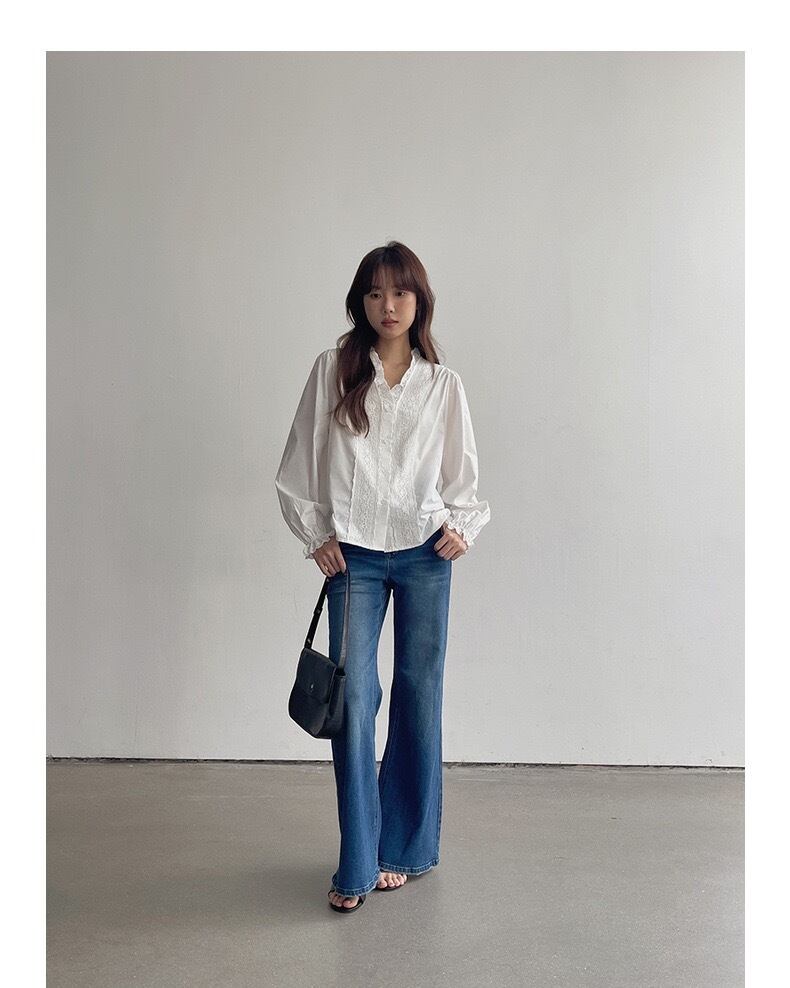 ヴィンテージショップで見つけたような、クラシカルなデザインが魅力のブラウスです。いつものコーディネートに取り入れるだけで、洗練された上品な雰囲気を演出します。特徴は、胸元と襟元に施されたアイレットレース(穴の開いたレース)とフリル。手仕事のような温かみのあるデザインが、ブラウスに特別な存在感を与えます。Vネックの開き具合は絶妙で、デコルテをきれいに見せつつ、エレガントな印象を与えます。