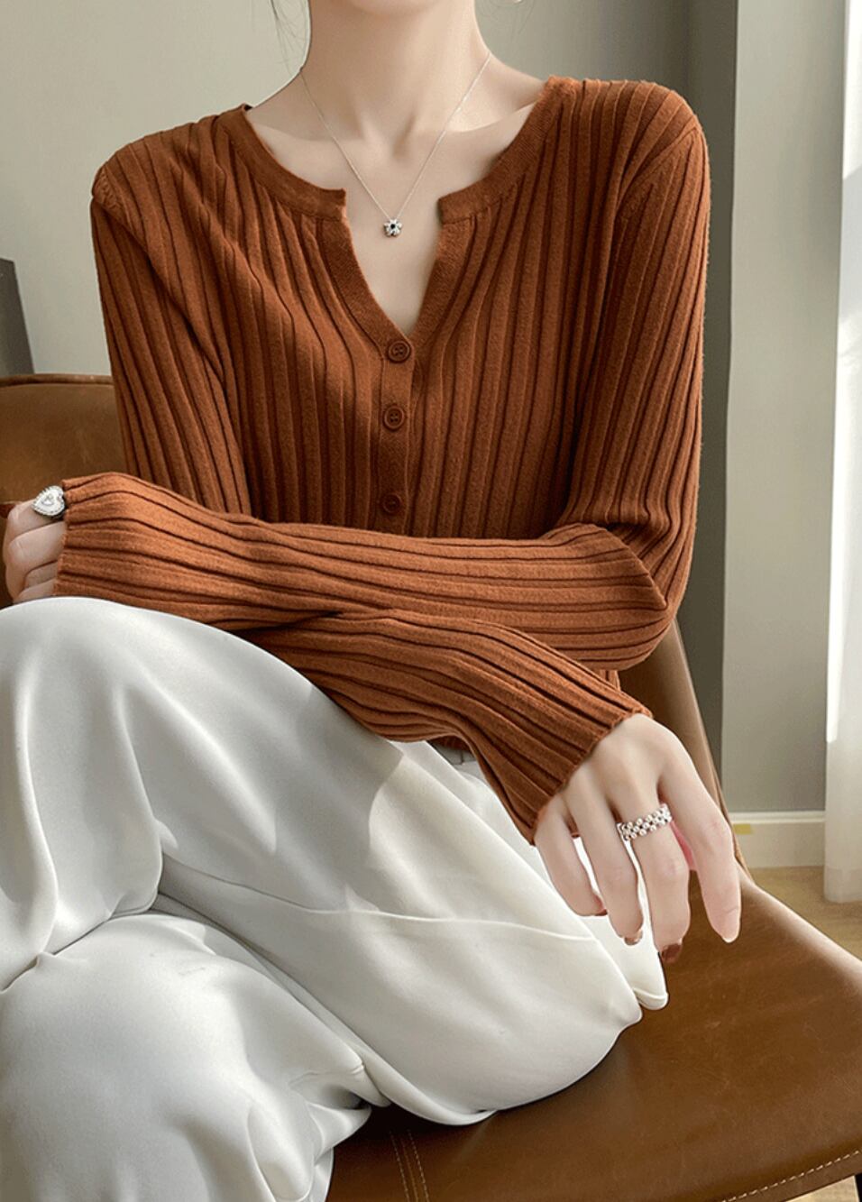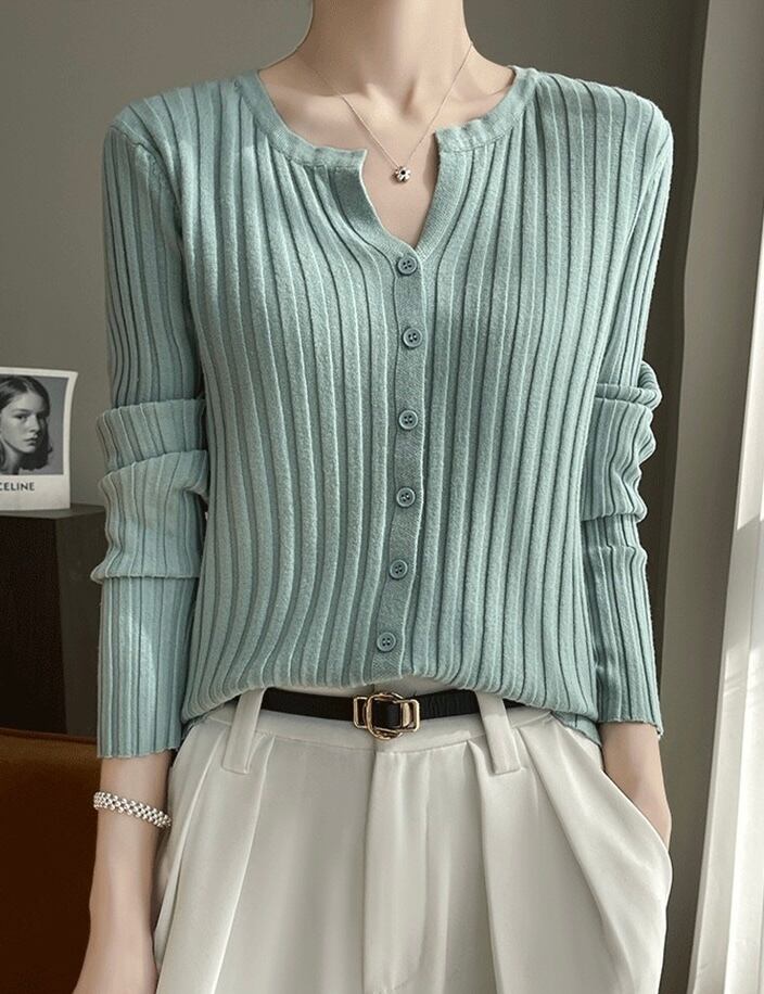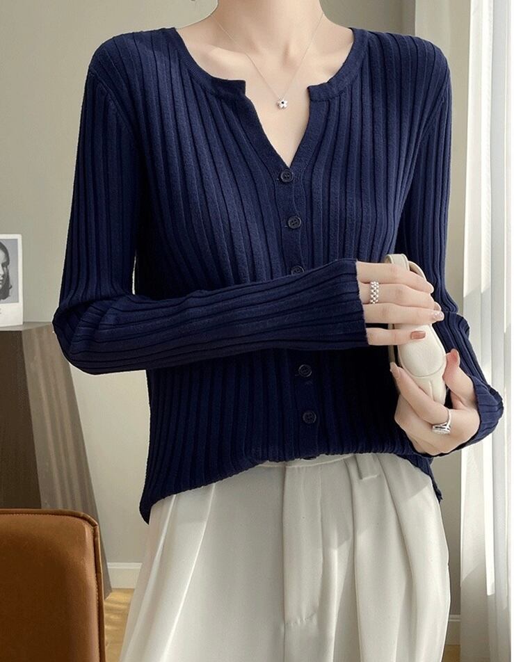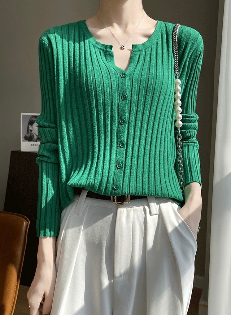 季節の変わり目に一枚あると便利な、万能なリブカーディガンです。シンプルながらも洗練されたデザインが、どんなコーディネートにも自然と馴染みます。カラーは、様々なスタイルに合わせやすいベーシックカラーから、コーディネートに彩りを添える鮮やかなカラーまで、豊富に取り揃えています。ボタンを開けてジャケットのように羽織ったり、ボタンを留めて一枚のトップスとして着たりと、着こなしの幅が広いのが特徴です。ハイウエストのボトムスと合わせれば、脚長効果も期待できます。オフィススタイルにはもちろん、休日のカジュアルな着こなしにも活躍します。