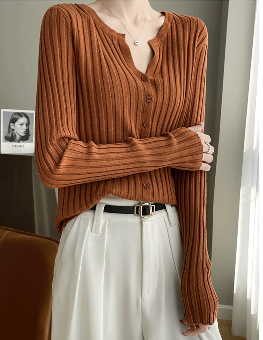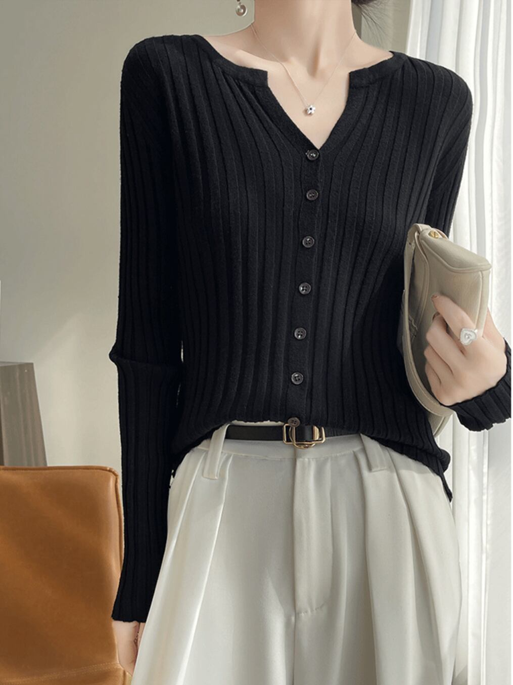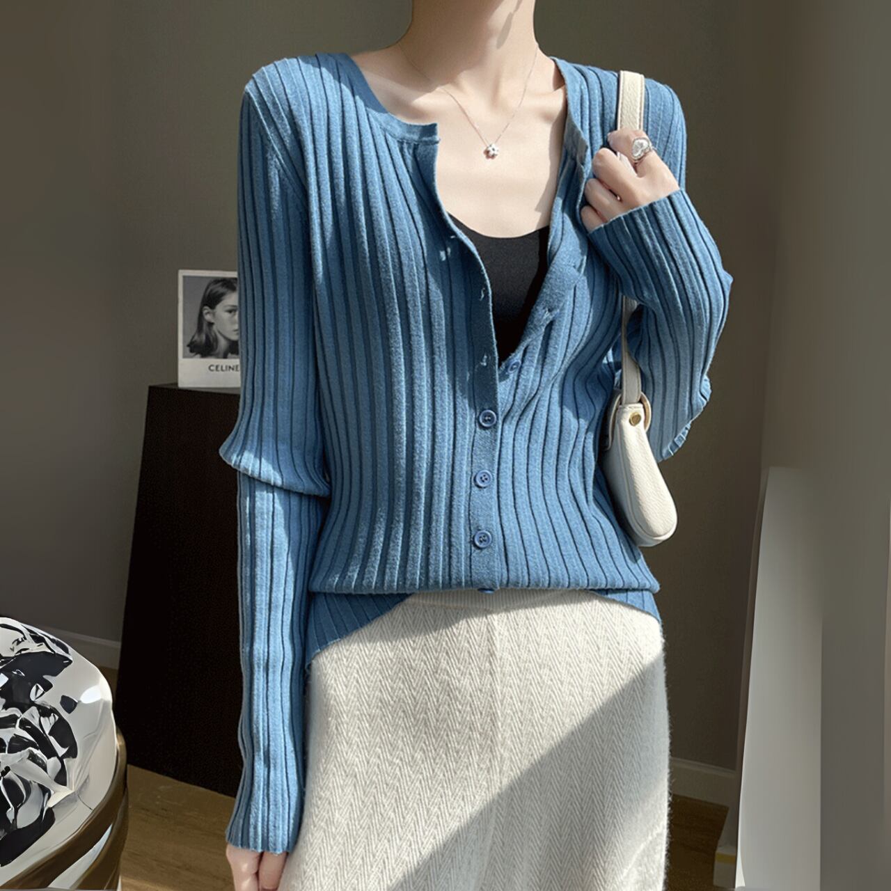 季節の変わり目に一枚あると便利な、万能なリブカーディガンです。シンプルながらも洗練されたデザインが、どんなコーディネートにも自然と馴染みます。カラーは、様々なスタイルに合わせやすいベーシックカラーから、コーディネートに彩りを添える鮮やかなカラーまで、豊富に取り揃えています。ボタンを開けてジャケットのように羽織ったり、ボタンを留めて一枚のトップスとして着たりと、着こなしの幅が広いのが特徴です。ハイウエストのボトムスと合わせれば、脚長効果も期待できます。オフィススタイルにはもちろん、休日のカジュアルな着こなしにも活躍します。