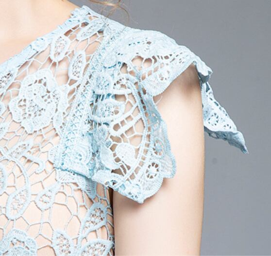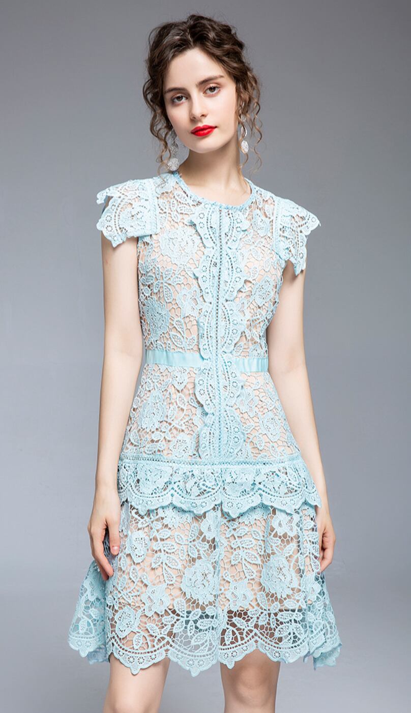レディース ワンピース レディース ミニ ショート 膝上 半袖 ラウンドネック 襟なし セミフレア 細身 レース 刺繍 ハイウエスト 透け感 肌見せ 大人可愛い きれいめ 上品 おしゃれ 個性的 主役級 存在感 涼しげ 花柄 フラワー 総柄 夏 結婚式 二次会 披露宴 発表会 デート お出かけ パーティー イベント レストラン バカンス 高原 ホテル 発表会 コンサート 合コン コンパ お呼ばれ お揃い 双子 韓国 オルチャン コーデ 楽ちん モテ スタイルアップ S M L XL 2XL 水色 ブルー
