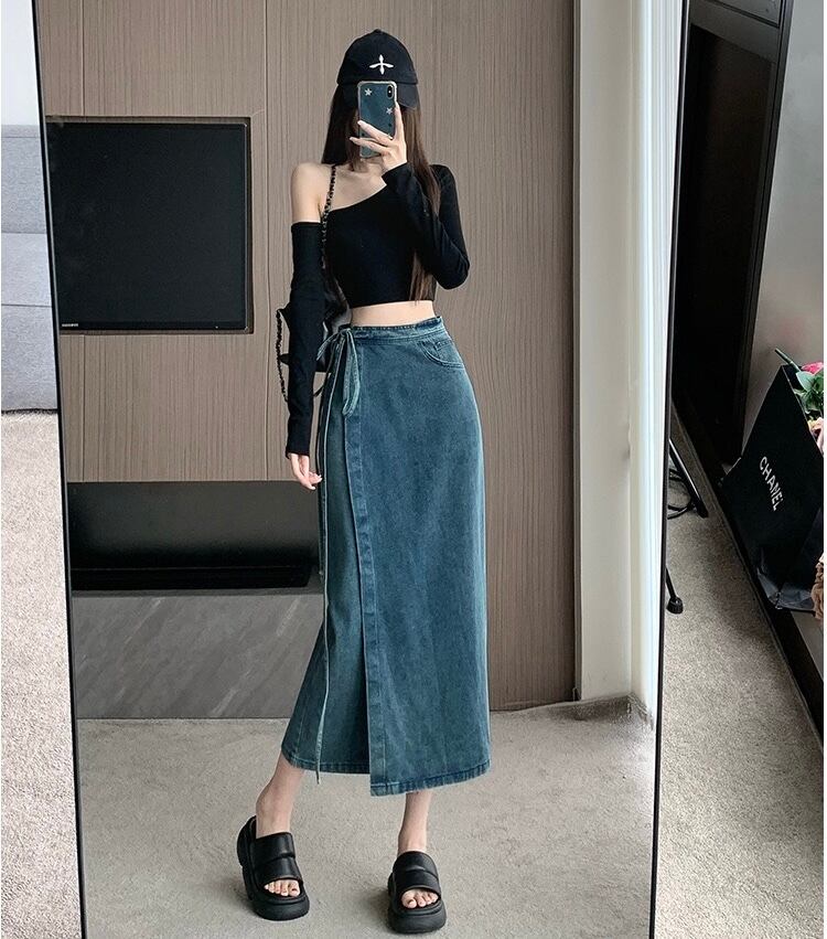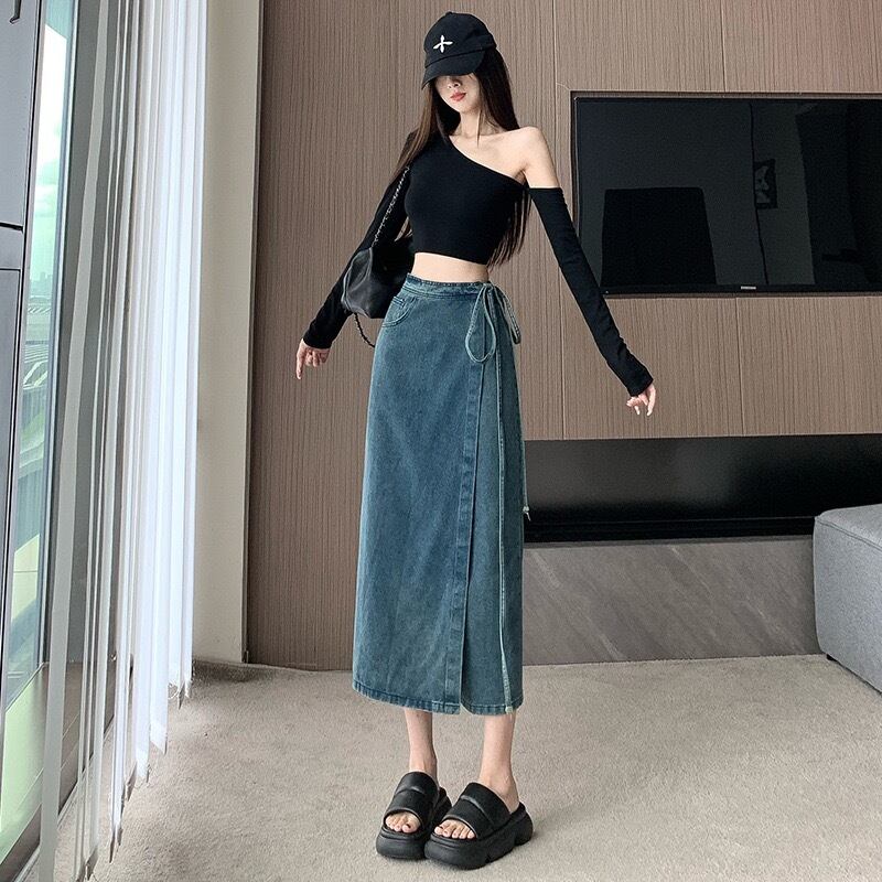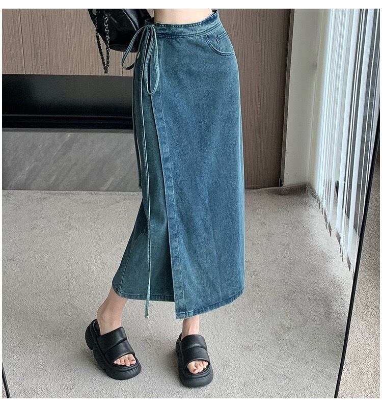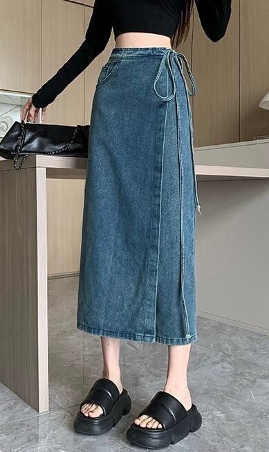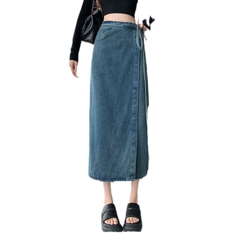 レディース スカート ボトムス デニムスカート 膝下 ミモレ ミディアム Iライン ラップ ウエストマーク ウエストリボン スリット ハイウエスト デニム ブルーデニム シンプル カジュアル おしゃれ こなれ感 個性的 主役級 存在感 ベーシック ナチュラル 清潔感 無地 春 夏 秋 ロングシーズン ママ OL 学生 デート お出かけ リゾート 旅行 女子会 ショッピング ランチ 韓国 体型カバー 脚長 普段使い 着回し モテ インスタ映え S M L XL ブルー ベーシックカラー 大人カラー