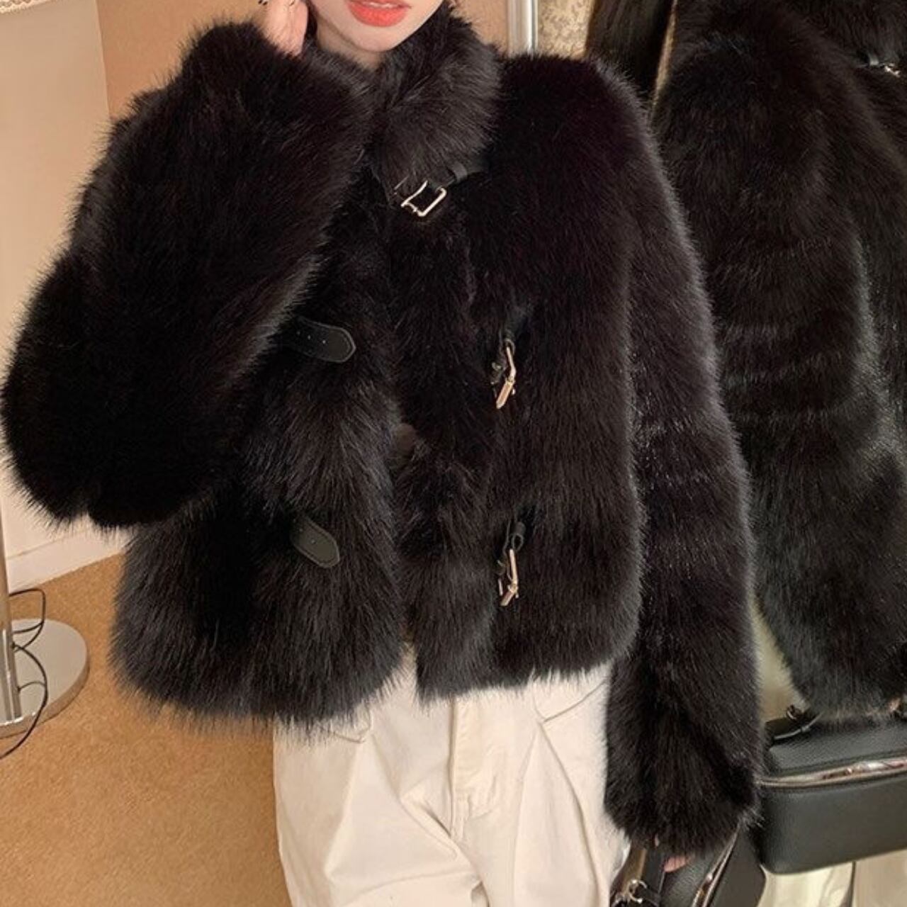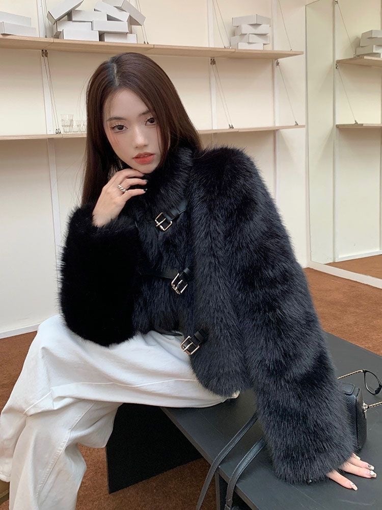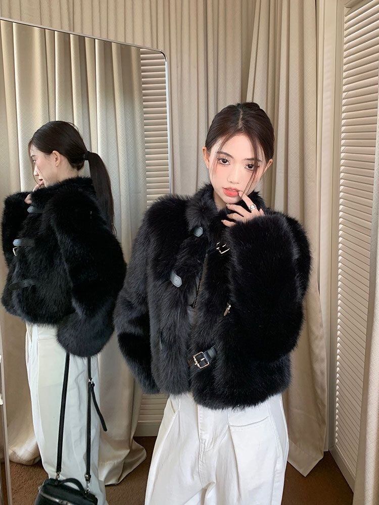 洗練された大人の冬スタイルを演出するショートコート。毛足が長く、ボリューム感のある素材が、着るだけでワンランク上の着こなしを叶えます。重くなりがちな冬のコーディネートに軽やかさと華やかさをプラスするショート丈は、どんなボトムスともバランス良く決まるのが魅力。フロントにあしらわれたバックルデザインが、甘すぎないクールなアクセントに。バランスの取れたスタイリングが簡単に完成します。日常のカジュアルスタイルから、特別な日のドレスアップまで、様々なシーンで活躍する万能な一着です。