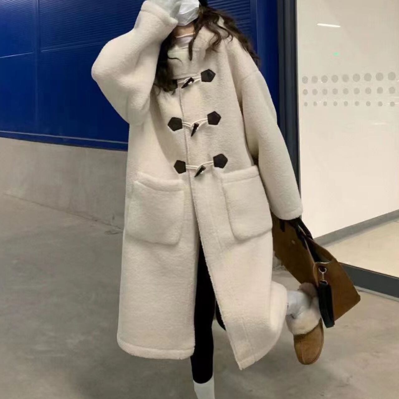 レディース コート アウター 上着 羽織 前開き ダッフル ボアコート 膝下 ミディアム 長袖 フード ストレート Iライン もこもこ ふわふわ ポケット ボア 異素材ミックス 大人可愛い カジュアル おしゃれ レトロ 主役級 存在感 学生風 ベーシック ナチュラル 無地 秋 冬 クリスマス バレンタイン 学生 通学 デート お出かけ 旅行 女子会 重ね着 韓国 楽ちん 暖かい 防寒 普段使い レイヤード インスタ映え S M L XL 2XL 大きいサイズ ライトベージュ ブラウン ベーシックカラー