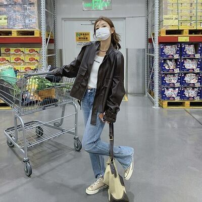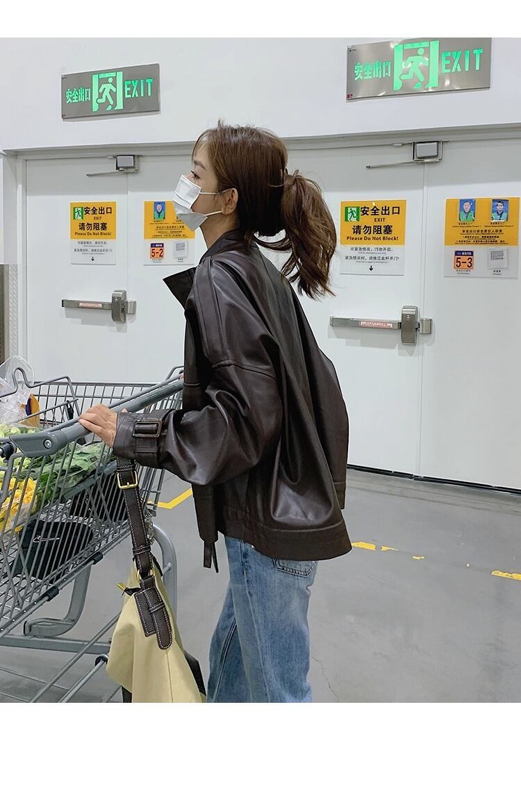 ジャケット アウター 上着 レザージャケット ミディアム ミディアム丈 長袖 襟付き ワイド ストレート ファスナー ヴィンテージ アメカジ フェイクレザー 大人可愛い シンプル カジュアル おしゃれ かっこいい レトロ こなれ感 ラフ メンズライク マニッシュ ボーイッシュ クール モダン 主役級 存在感 キュート クラシカル ベーシック ワイルド 無地 春 秋 学生 学校 通学 デート お出かけ 女子会 休日 ショッピング カフェ 普段使い 着回し トレンド 定番 S M L XL ブラック ブラウン