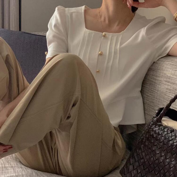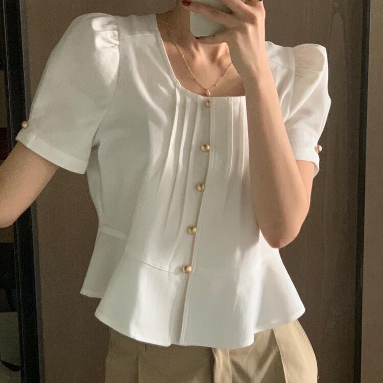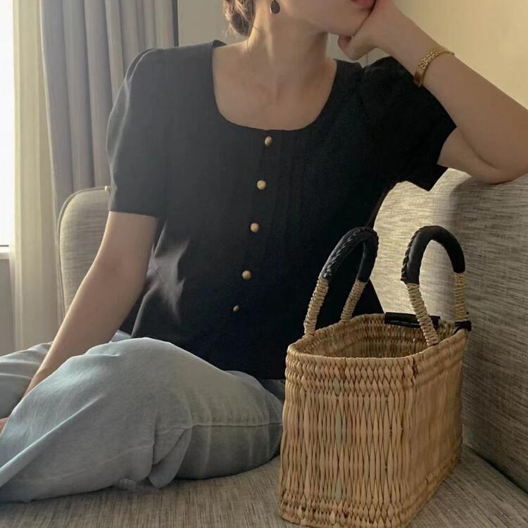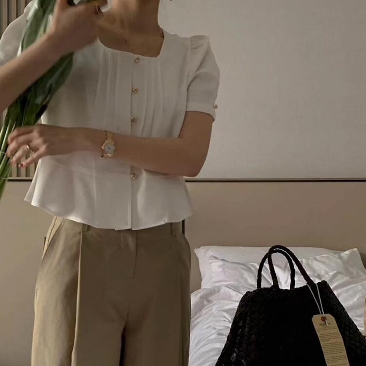 レディース トップス ブラウス 半袖 パフスリーブ スクエアネック かわいい 大人可愛い きれいめ シンプル 上品 おしゃれ レトロ こなれ感 存在感 キュート クラシカル ベーシック ロマンティック 清潔感 シック 無地 夏 発表会 授業参観 OL 学生 デート お出かけ 旅行 レストラン 公園 女子会 休日 ショッピング コンサート 合コン コンパ カフェ 婚活 ランチ お呼ばれ オルチャン コーデ モテ 清楚 ワンサイズ 黒 ブラック オフホワイト ベージュ くすみ ベーシックカラー 大人カラー