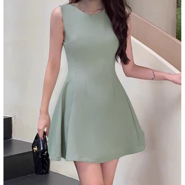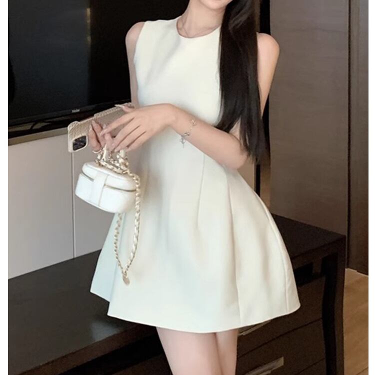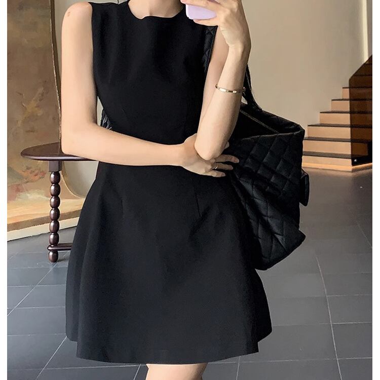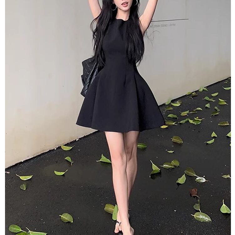 レディース ワンピース ドレス ミニ ショート 袖なし ノースリーブ ラウンドネック 襟なし ノーカラー フレア 細身 Aライン フェミニン ファスナー ハイウエスト かわいい 大人可愛い シンプル 上品 おしゃれ ガーリー エレガント 存在感 ラブリー キュート ロマンティック 軽やか セクシー 無地 夏 OL デート パーティー イベント コンサート お呼ばれ オケージョン 脚長 モテ スタイルアップ S M L XL 黒 ブラック ダークグレー ベージュ ピンク レッド 緑 グリーン 大人カラー