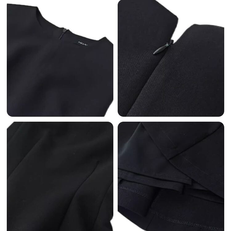 ラウンドネック×ノーカラーデザインでデコルテをすっきりと見せ、シンプルながらも洗練された印象に。