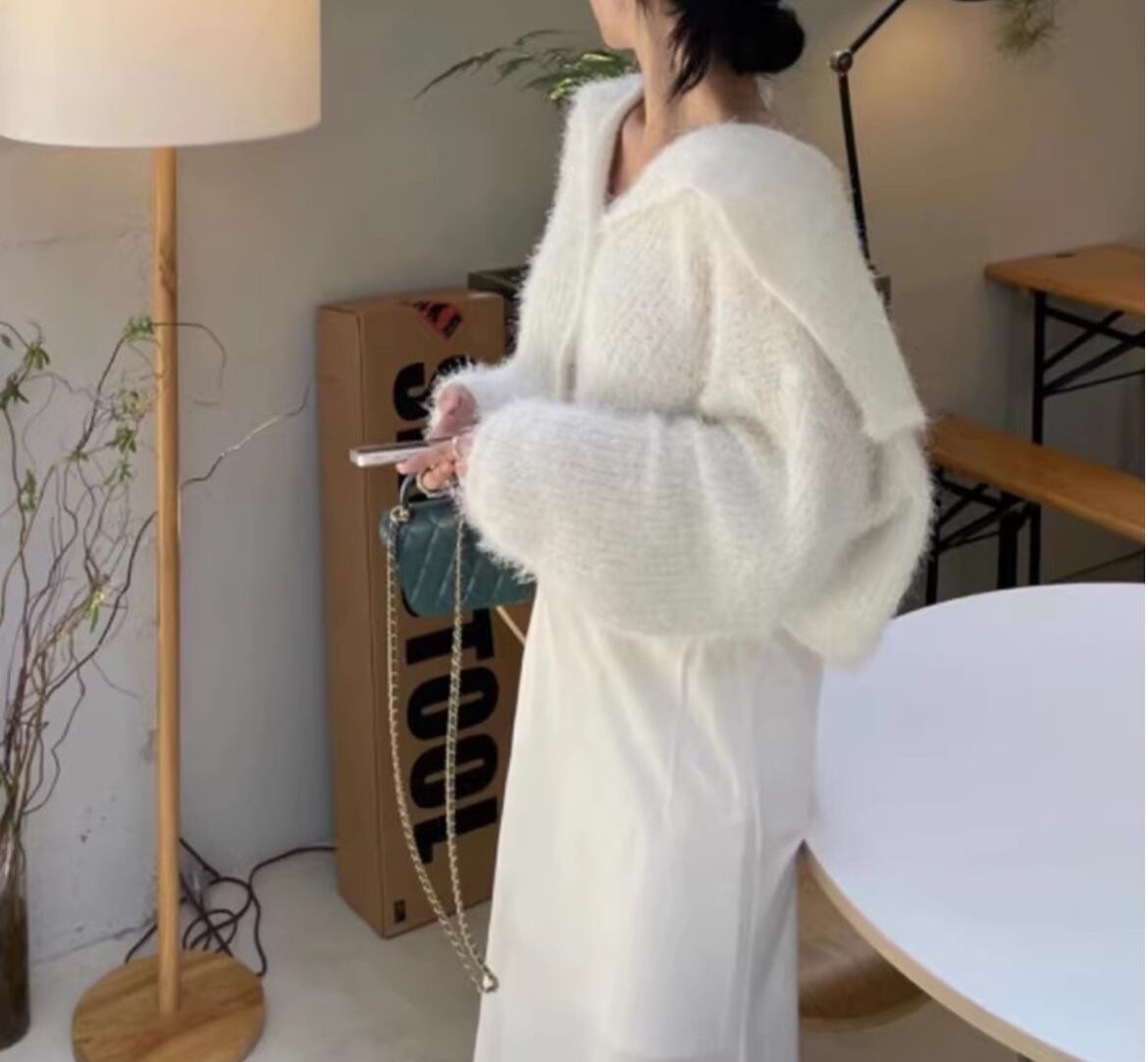 トップス ニット セーター カーディガン レディース 羽織 シャギーニットスカート ショート 長袖 ヘソ出し セーラーカラー スリム 細身 フェミニン 大人可愛い シンプル カジュアル おしゃれ こなれ感 ラフ ガーリー ルーズ 存在感 とろみ感 抜け感 ラブリー アクティブ 無地 秋 冬 オフィス OL 通勤 デート お出かけ イベント 女子会 休日 韓国 オルチャン コーデ 体型カバー 普段使い 着回し モテ トレンド スタイルアップ フリーサイズ ワンサイズ オフホワイト ブラック ベージュ