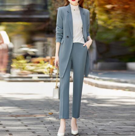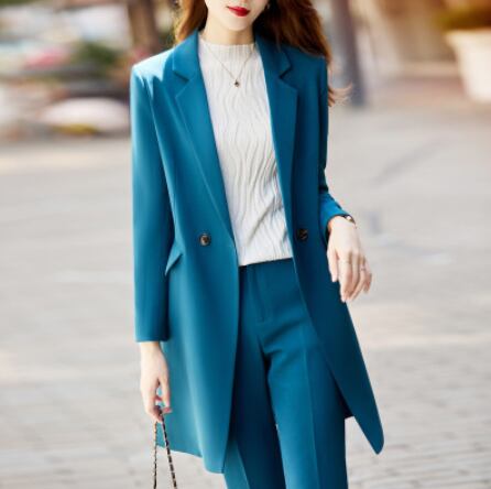 このツーピースは、シンプルでありながらおしゃれなデザインが特徴で、スリムなシルエットが美しさを引き立てます。ジャケットは長袖仕様で、シーズンを問わず着用可能。パンツは脚長効果を狙った美脚ラインで、どんな体型にもフィットします☆