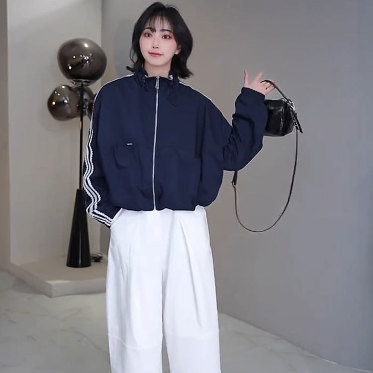 レディース トップス ジャケット アウター 羽織 前開き 長袖 ボリューム袖 ドロップショルダー ワイド オーバーサイズ 3本ライン レース バイカラー ドッキング かわいい カジュアル おしゃれ かっこいい こなれ感 ラフ マニッシュ ガーリー 個性的 キュート 春 秋 学生 学校 通学 デート お出かけ アウトドア キャンプ 旅行 ショッピング コンサート カフェ コーデ 楽ちん 防寒 普段使い 着回し インスタ映え M L オフホワイト くすみ ネイビー 大人カラー 秋カラー イエローグリーン