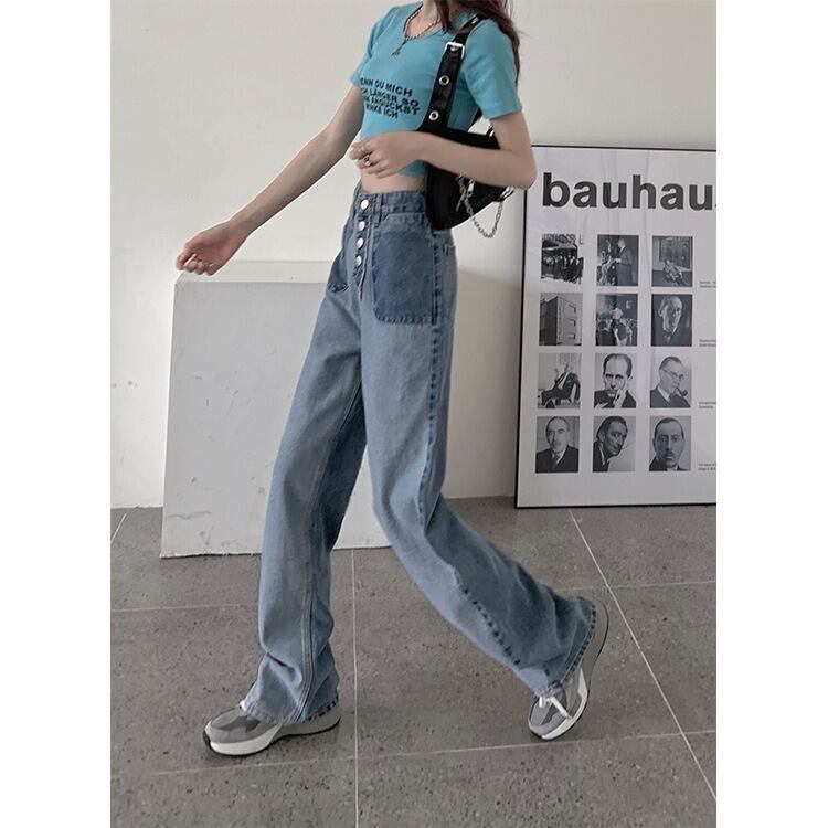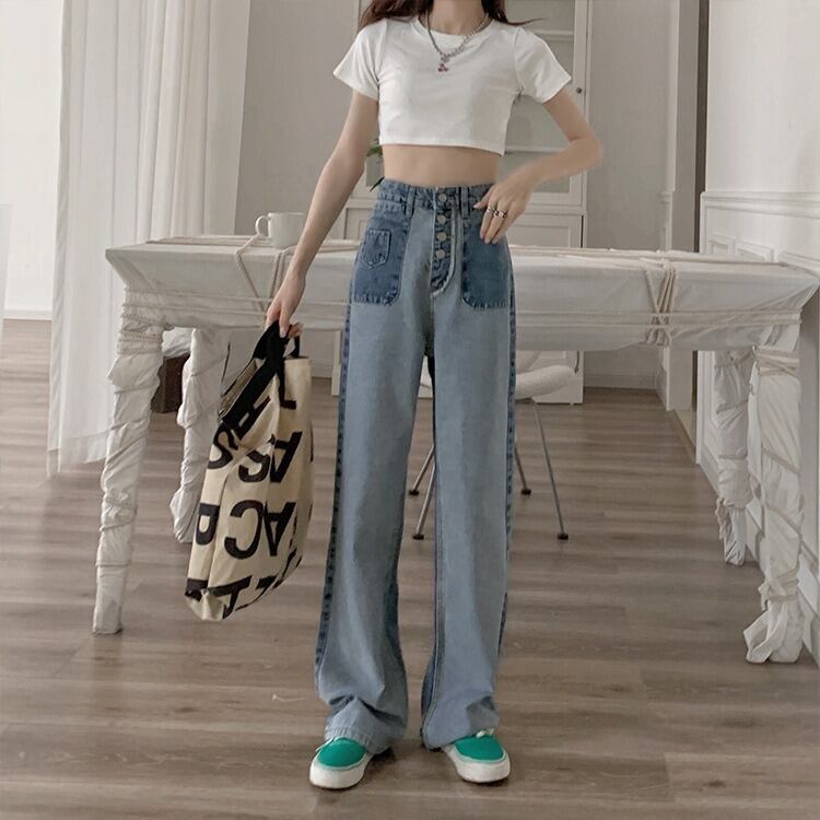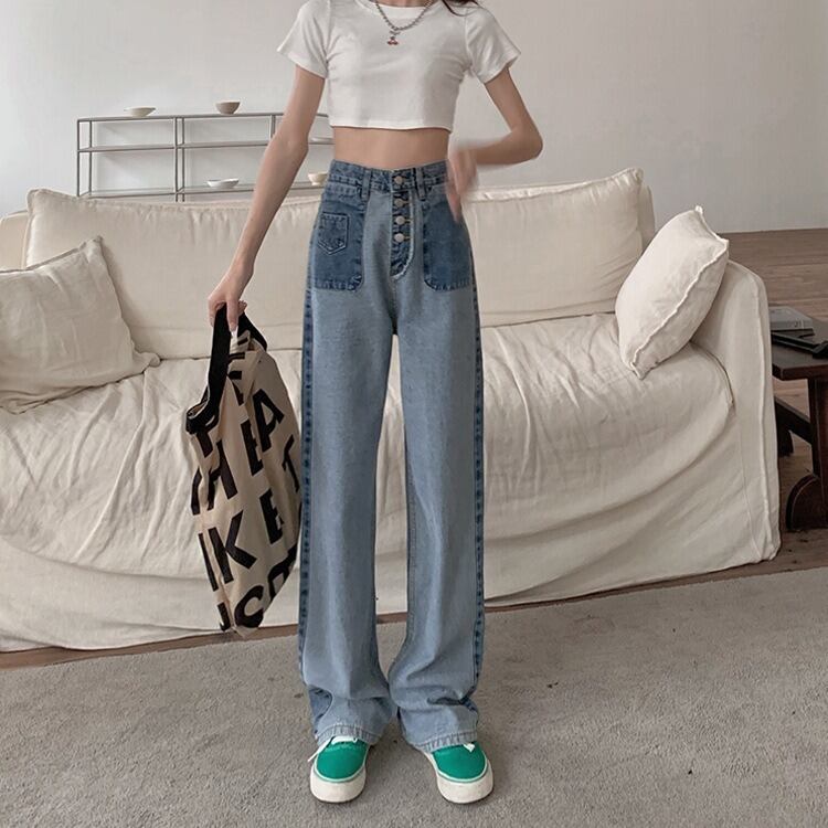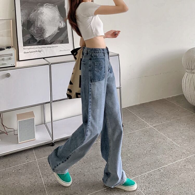このデニムパンツは、ハイウエストデザインでスタイルをきれいに見せる効果があり、カジュアルスタイルからおしゃれなコーディネートまで、様々なシーンで活躍します。