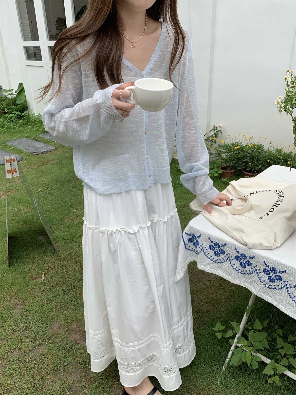 レディース トップス ニット カーディガン 長袖 Vネック フェミニン 透け感 シースルー 薄手 シアー かわいい 大人可愛い シンプル カジュアル こなれ感 ガーリー ルーズ 抜け感 キュート ベーシック 清潔感 涼しげ リラックス 軽やか 通気性 爽やか 無地 春 夏 ママ デート お出かけ リゾート 旅行 公園 休日 ショッピング お花見 楽ちん 体型カバー 普段使い 着回し 清楚 定番 日焼け対策 日焼け予防 S M L ゆったり ゆる ぽっちゃり ホワイト ブラック ライトブルー ライトグリーン