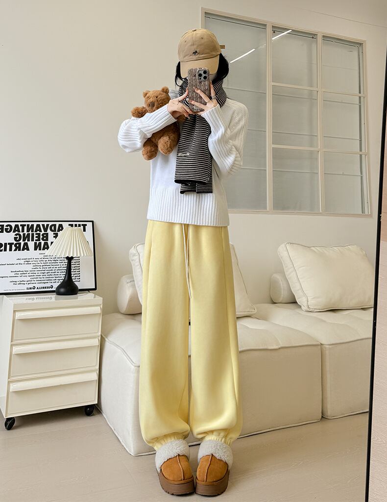 レディース パンツ ボトムス ズボン ワイドパンツ スウェットパンツ フルレングス ワイド ストリート ハイウエスト ウエストゴム 裏起毛 かわいい シンプル カジュアル こなれ感 ラフ スポーティー ルーズ 抜け感 ベーシック リラックス 無地 秋 冬 学生 デート お出かけ 公園 休日 コンサート ライブ 韓国 楽ちん 暖かい 防寒 体型カバー 脚長 普段使い 着回し トレンド 定番 スタイルアップ S M L XL ゆったり ゆる ぽっちゃり ホワイト ブラック ブラウン グレー イエロー ブルー
