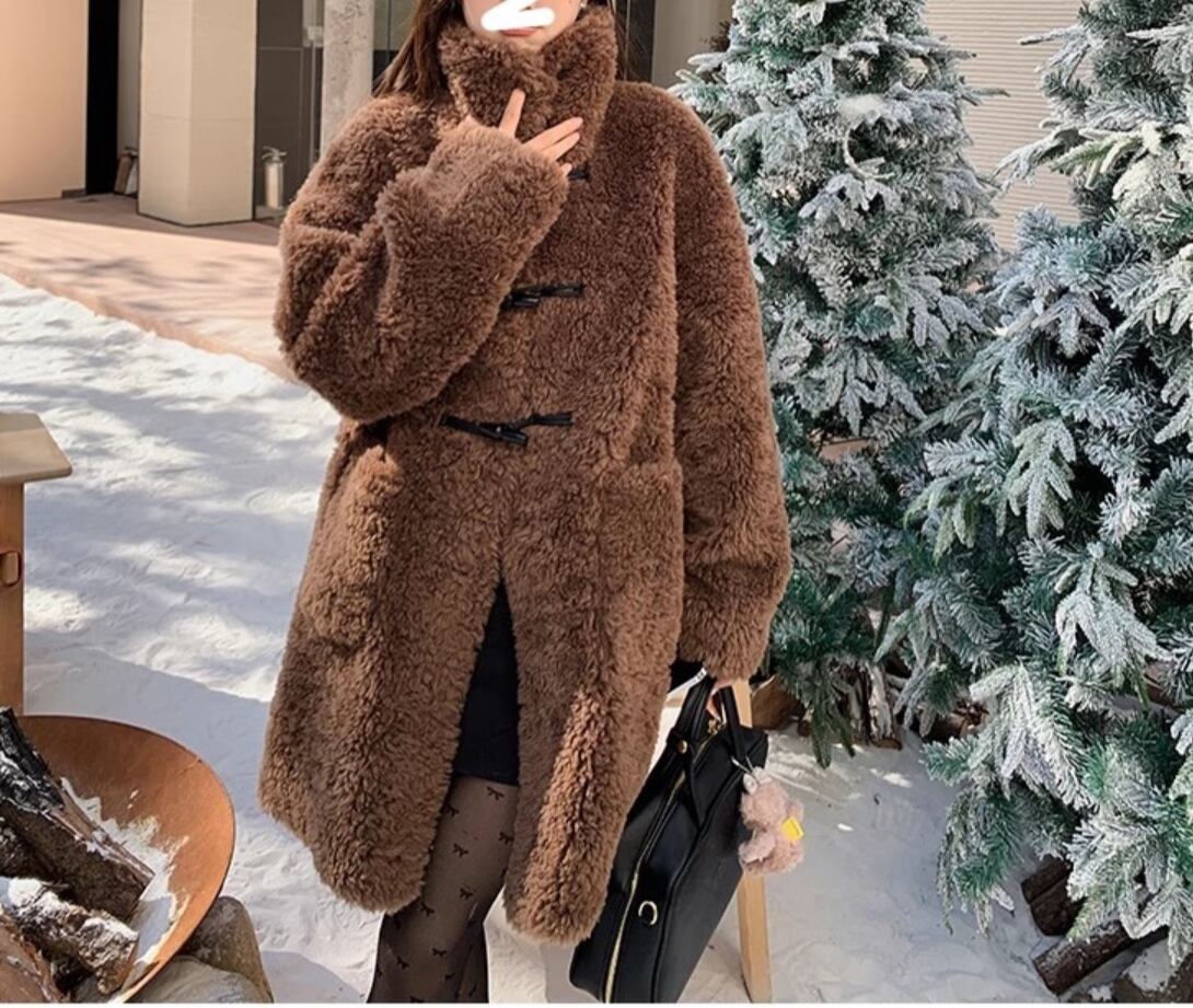 レディース コート アウター 上着 ダッフル ボアコート 膝丈 ミモレ ミディアム 長袖 襟付き もこもこ ふわふわ ポケット ボタン シングルブレスト かわいい 大人可愛い シンプル カジュアル おしゃれ ガーリー エレガント 主役級 存在感 ラブリー キュート ロマンティック 無地 秋 冬 クリスマス バレンタイン 学生 通学 デート お出かけ 旅行 バカンス ショッピング 韓国 オルチャン 暖かい 防寒 体型カバー インスタ映え S M L 黒 ブラック ブラウン ベージュ ベーシックカラー 秋カラ