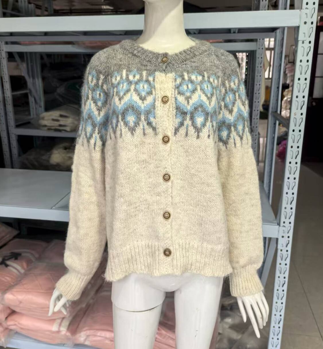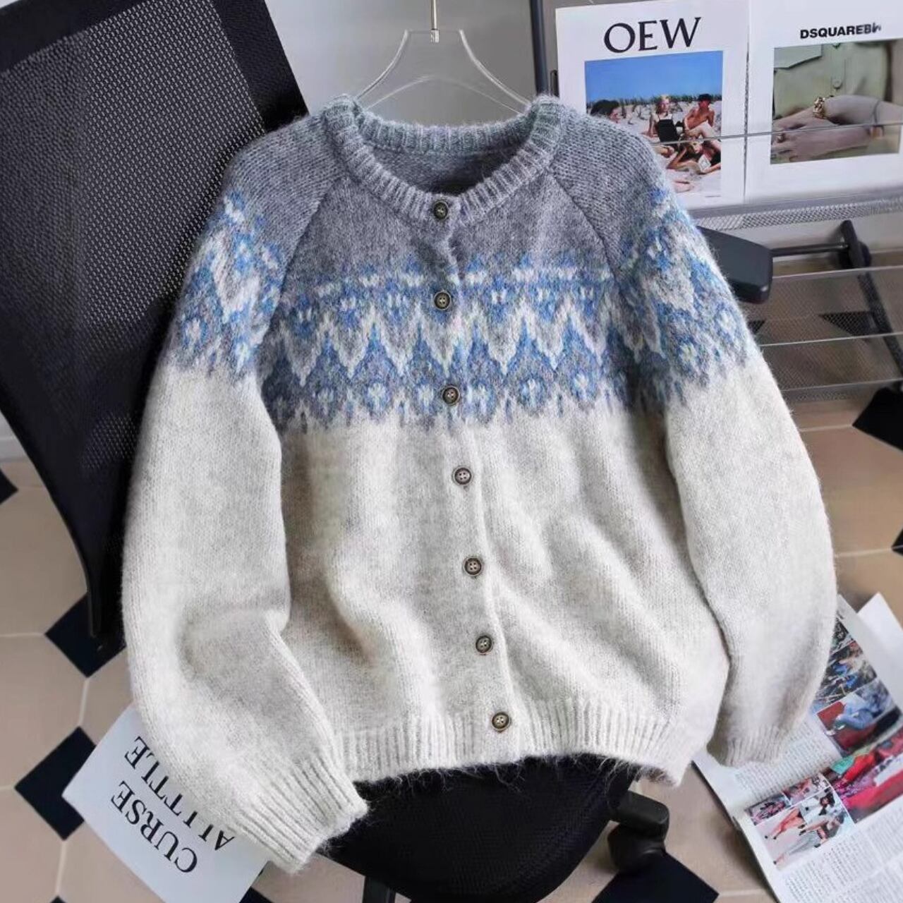 レディース ニット セーター カーディガン 上着 羽織 前開き レギュラー丈 長袖 クルーネック 襟なし ノーカラー ふわふわ ボタン シングルブレスト かわいい 大人可愛い カジュアル おしゃれ レトロ こなれ感 主役級 存在感 カントリー ナチュラル 清潔感 爽やか ノルディック 秋 冬 クリスマス 学生 通学 デート お出かけ アウトドア 旅行 公園 女子会 休日 ショッピング カフェ ランチ 重ね着 暖かい 防寒 着回し インスタ映え ワンサイズ ブラウン オフホワイト ネイビー