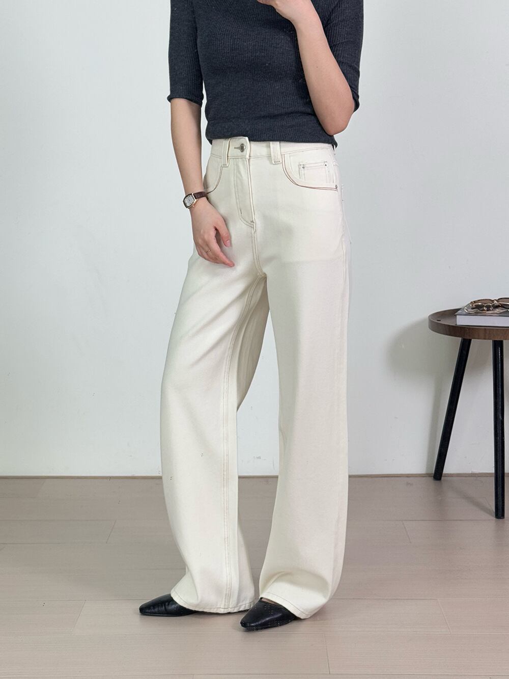カジュアルなデニム素材を、上品なカラーとワイドシルエットで大人仕様に仕上げた一本。コントラストの効いたステッチがさりげないアクセントとなり、着こなしにこなれ感をプラスします。デニム特有の丈夫な生地感は、長く愛用できる安心感を与えてくれます。季節を問わず着用できる万能なアイテムで、ワードローブに加えるだけで、コーディネートの幅がぐっと広がります。