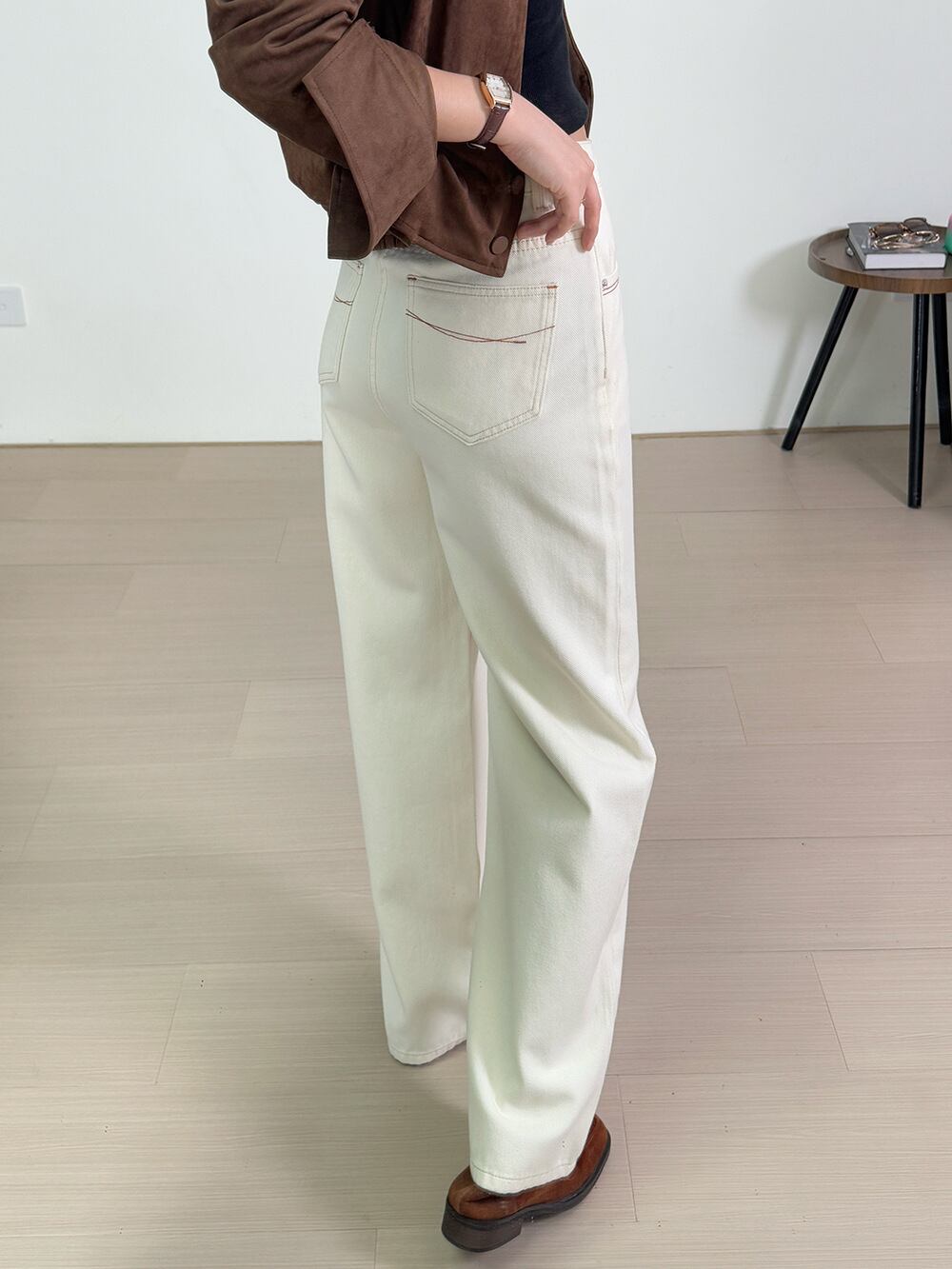 レディース パンツ ボトムス ズボン ジーンズ ストレートパンツ ワイドパンツ デニムパンツ ロング 丈長 ストリート ファスナー ポケット ハイウエスト デニム カラーデニム シンプル カジュアル かっこいい こなれ感 メンズライク ボーイッシュ 主役級 ベーシック ナチュラル 清潔感 爽やか 無地 春 夏 秋 冬 オールシーズン シーズンレス ママ 学生 お出かけ 旅行 女子会 ショッピング カフェ ランチ 脚長 普段使い 着回し 定番 S M L XL 白 ホワイト ベーシックカラー 大人カラー
