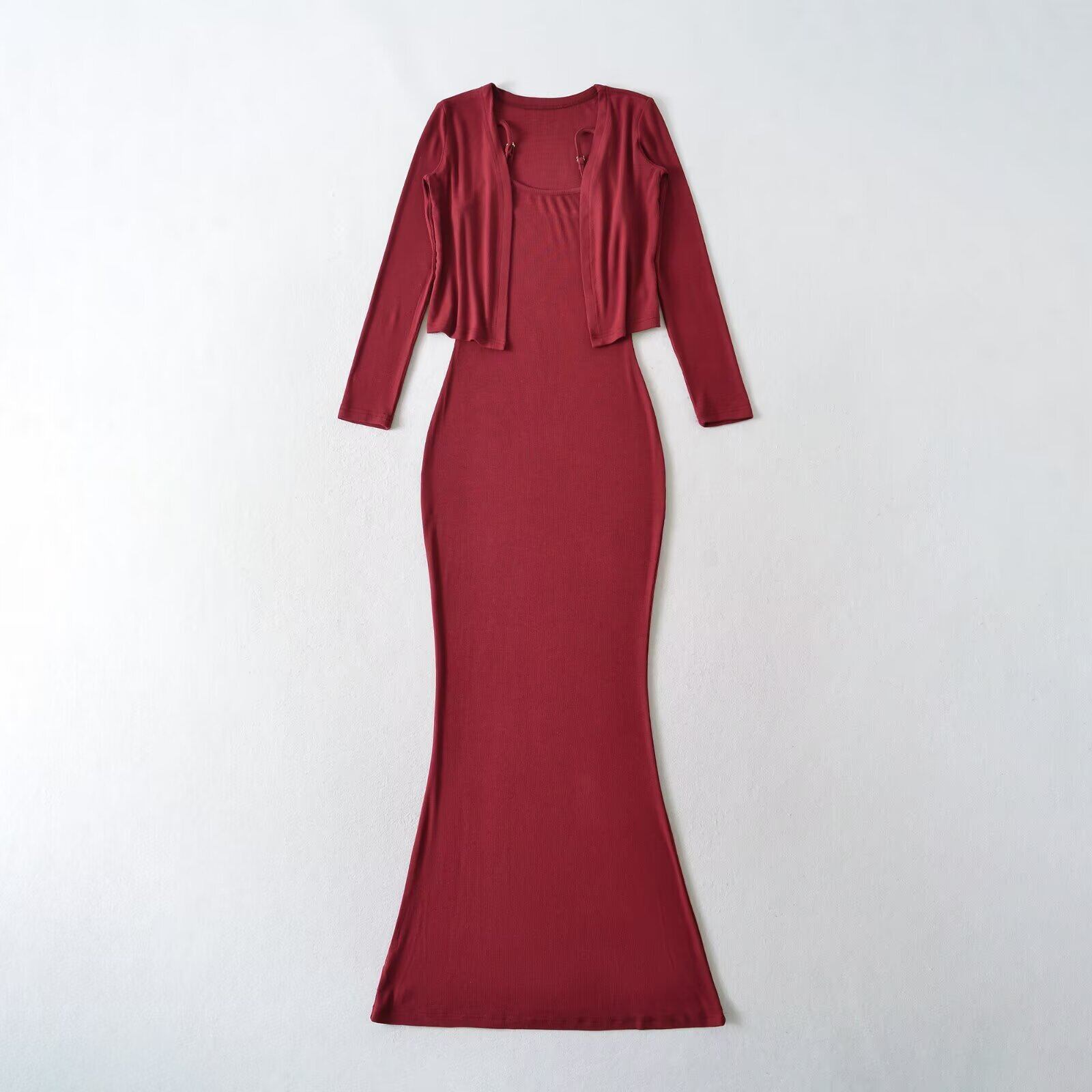 ロング丈のニットキャミワンピースは、タイトなマーメイドシルエットでスタイルアップ効果抜群。クロップド丈のカーディガンを合わせることで、こなれ感をプラス。リブニットのストレッチ素材が身体にやさしくフィットし、ボディラインを美しく引き立てます。春夏の普段使いや休日、旅行にも最適で、シンプルながらエキゾチックな雰囲気も漂う大人可愛いセットアップ。6色展開で気分に合わせた着回しが楽しめます。