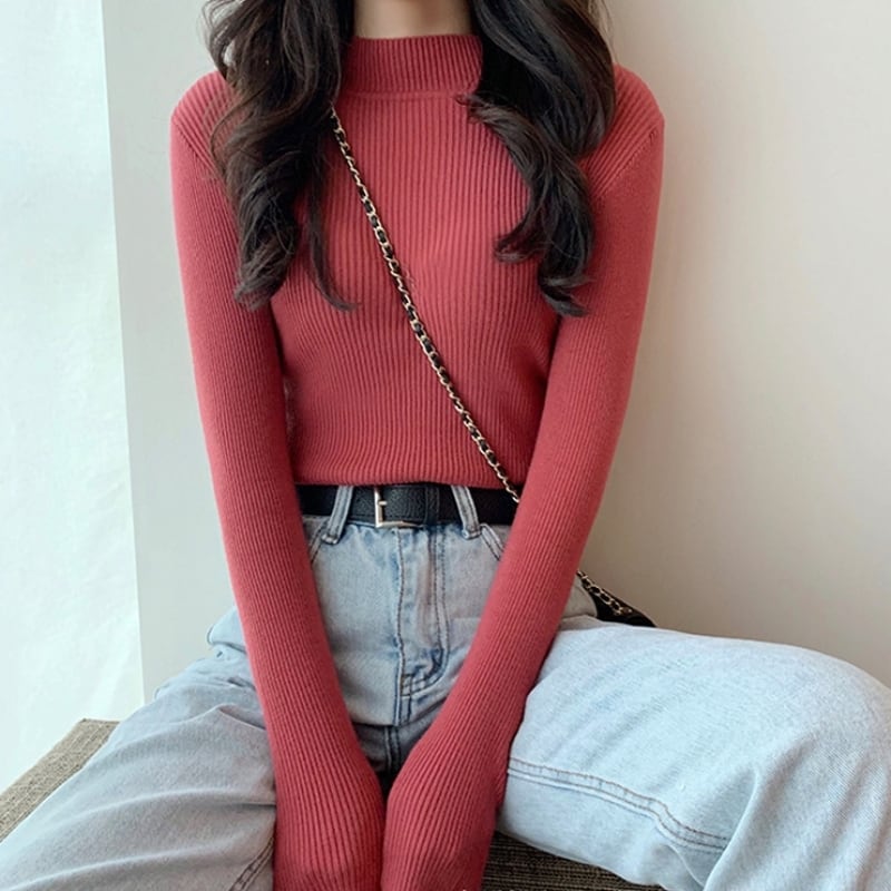 レディース トップス ニット セーター 長袖 ハイネック モックネック スリム 細身 フェミニン リブニット ストレッチ 伸縮性 大人可愛い きれいめ シンプル カジュアル 上品 おしゃれ こなれ感 エレガント モダン 抜け感 ベーシック ナチュラル 清潔感 シック エフォートレス アンニュイ マスキュリン 無地 秋 冬 ママ オフィス OL 学生 休日 ランチ 普段使い 着回し 定番 フリーサイズ ワンサイズ ホワイト ブラック ブラウン グレー イエロー カーキ ブルー レッド アプリコット パープル