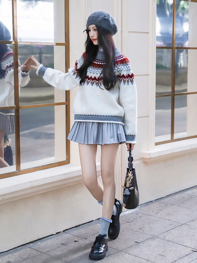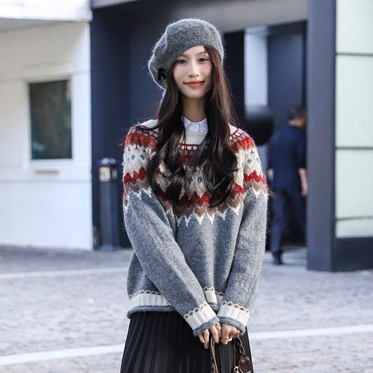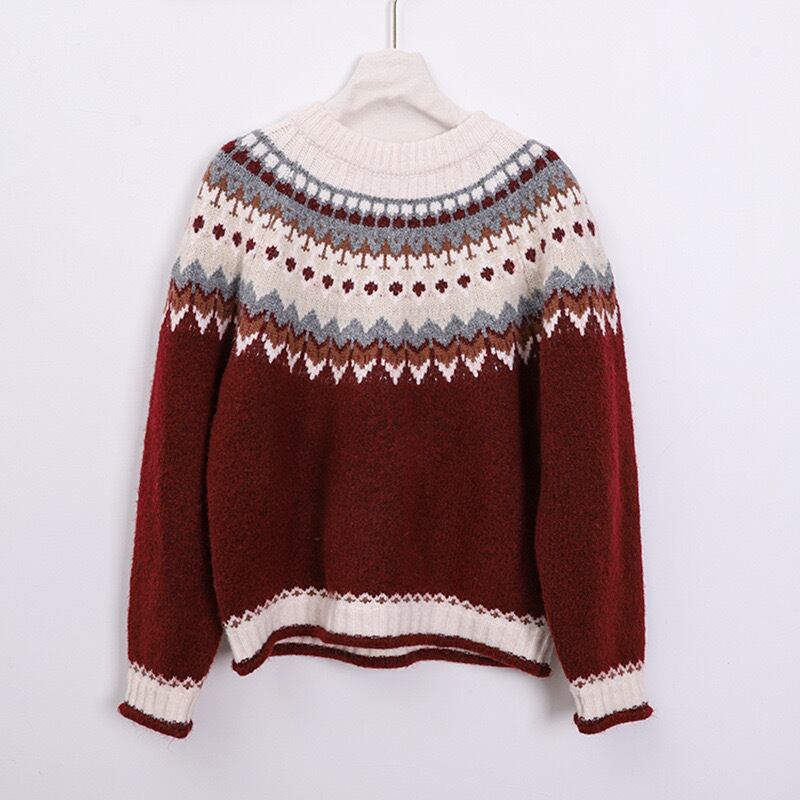 レディース トップス ニット セーター プルオーバー レギュラー丈 長袖 クルーネック 襟なし ノーカラー かわいい 大人可愛い カジュアル おしゃれ レトロ こなれ感 個性的 主役級 存在感 ヴィンテージ キュート 清潔感 爽やか ノルディック 秋 冬 ロングシーズン クリスマス バレンタイン 学生 通学 デート お出かけ お泊まり 旅行 女子会 休日 ショッピング カフェ ランチ 暖かい 防寒 普段使い 着回し インスタ映え ワンサイズ ブラック グレー オフホワイト ブルー レッド 秋カラー