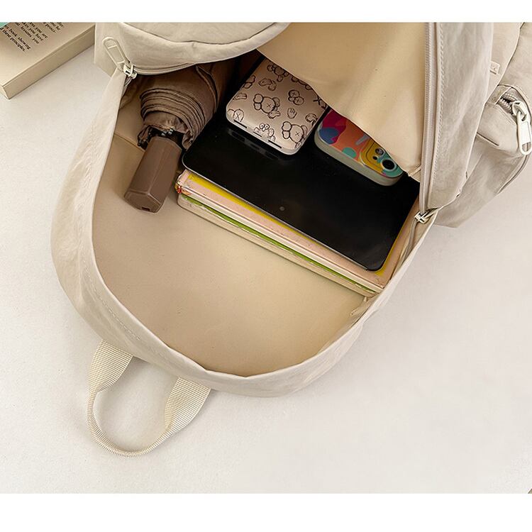 ファスナー付きのメインコンパートメントは、大きな荷物もしっかり収納可能で、セキュリティ面も安心です。