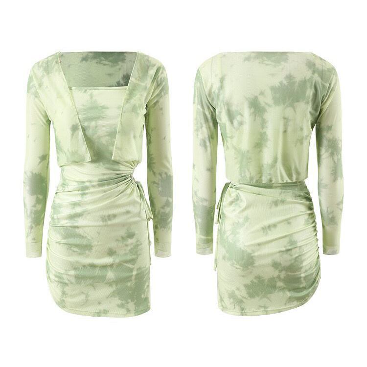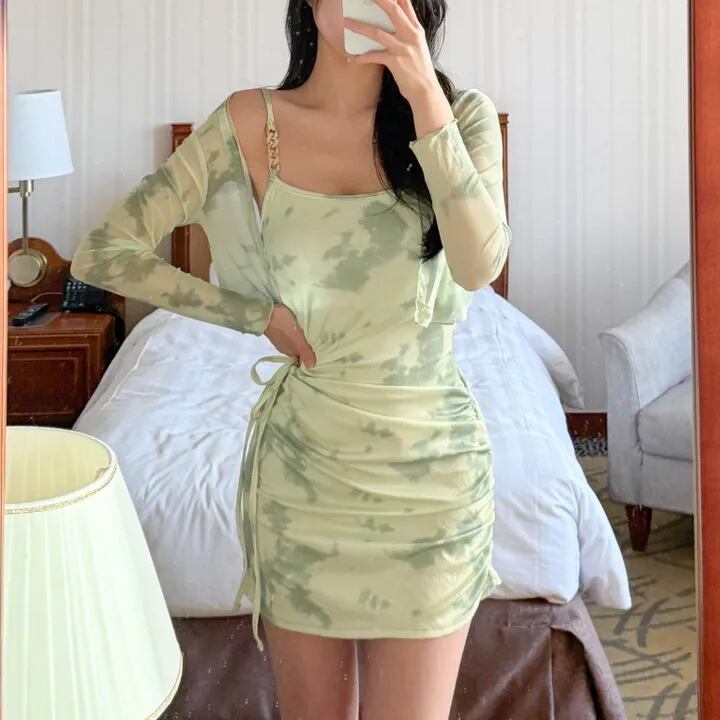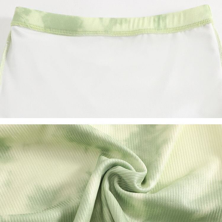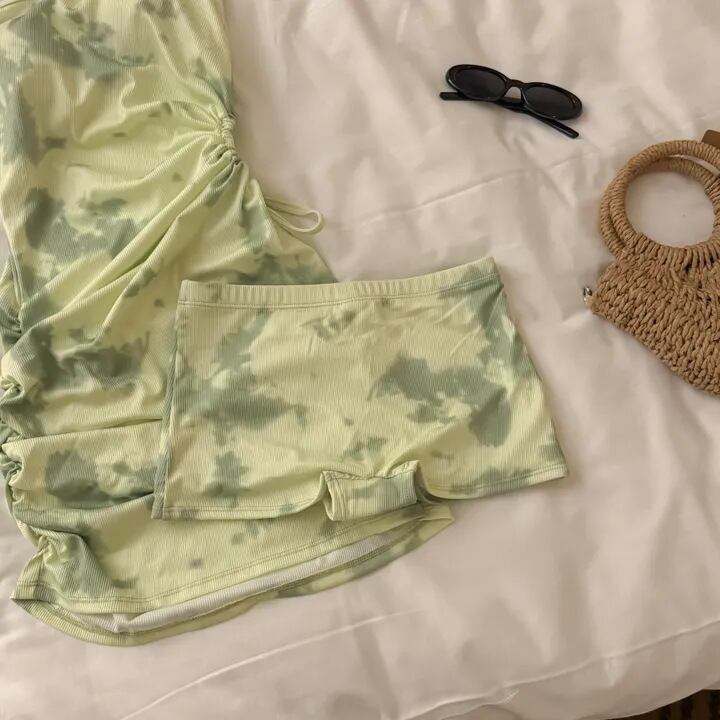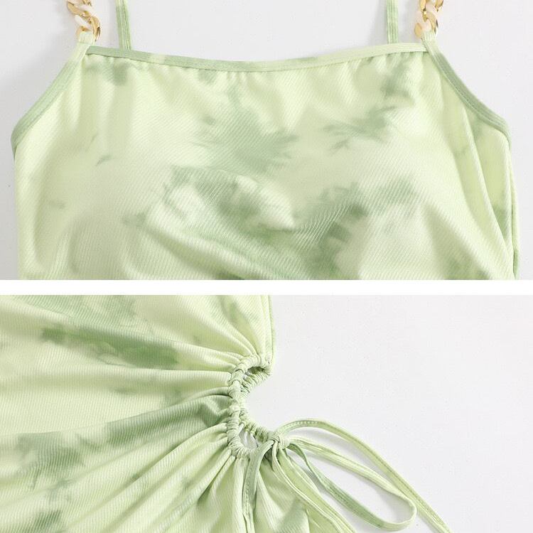 水着 ビキニ スイムウェア レディース ワンピース 体型カバー ラッシュガード ショートパンツ 3点セット セパレート パッド付き ウエストマーク シャーリング セット かわいい 大人可愛い きれいめ カジュアル 華やか 大人っぽい おしゃれ お洒落 存在感 ゴールドチェーン スタイリッシュ セクシー フェミニン タイダイ リゾート 旅行 温泉 プール 夏 海 脚長 着痩せ スタイルアップ 高見え 格上げ モテ 体型カバー インスタ映え 日除け スタイルカバー こなれ感 M L XL ライトグリーン