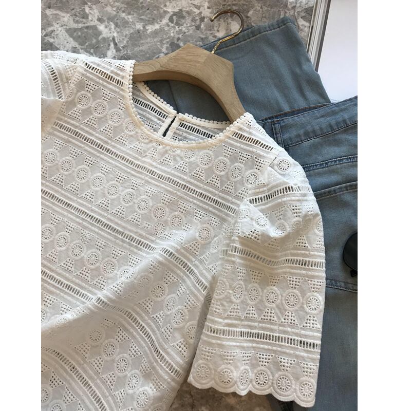 レディース トップス ブラウス 半袖 ラウンドネック 襟なし ノーカラー フェミニン 刺繍 透け感 透かし模様 透かし編み スカラップエッジ かわいい 大人可愛い カジュアル 上品 おしゃれ レトロ こなれ感 ガーリー 存在感 抜け感 ラブリー キュート クラシカル ベーシック ロマンティック ナチュラル 涼しげ 軽やか 通気性 爽やか 総柄 幾何学模様 夏 OL 学生 デート お出かけ 旅行 公園 女子会 休日 ショッピング カフェ ランチ お呼ばれ コーデ 普段使い 着回し モテ 清楚 S M L