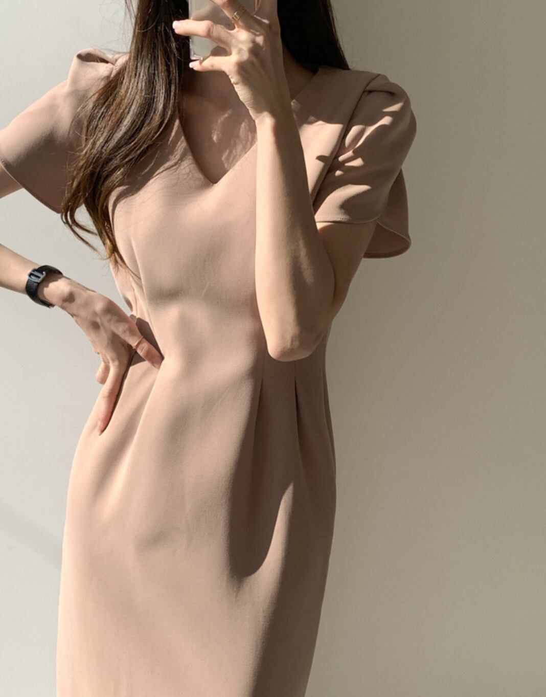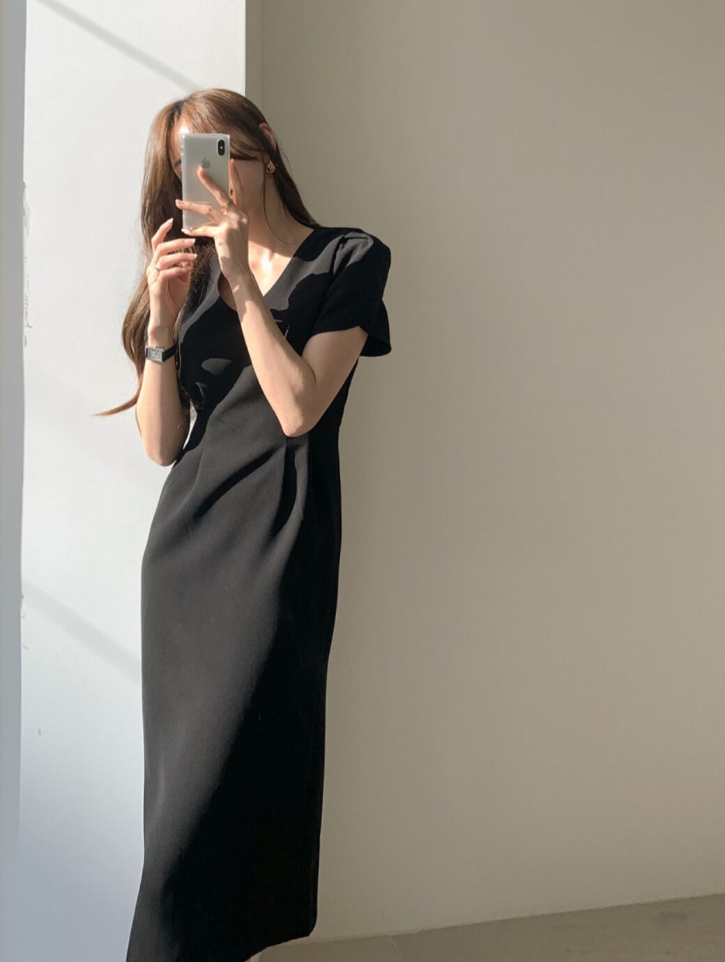 レディース ワンピース レディース ミモレ 半袖 ボリューム袖 ドルマンスリーブ パフスリーブ Vネック 襟なし タイト スリム Aライン コクーン ハイウエスト きれいめ シンプル 上品 おしゃれ かっこいい レトロ クール モード系 存在感 フォーマル 都会的 クラシカル 清潔感 シック 無地 総柄 夏 入学式 入園式 卒業式 卒園式 デート お出かけ リゾート 旅行 海 プール レストラン ビーチ 女子会 休日 合コン コンパ カフェ ランチ オルチャン 楽ちん 着回し S M L 黒 ブラック カ