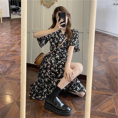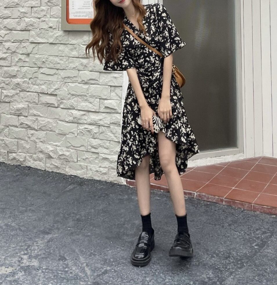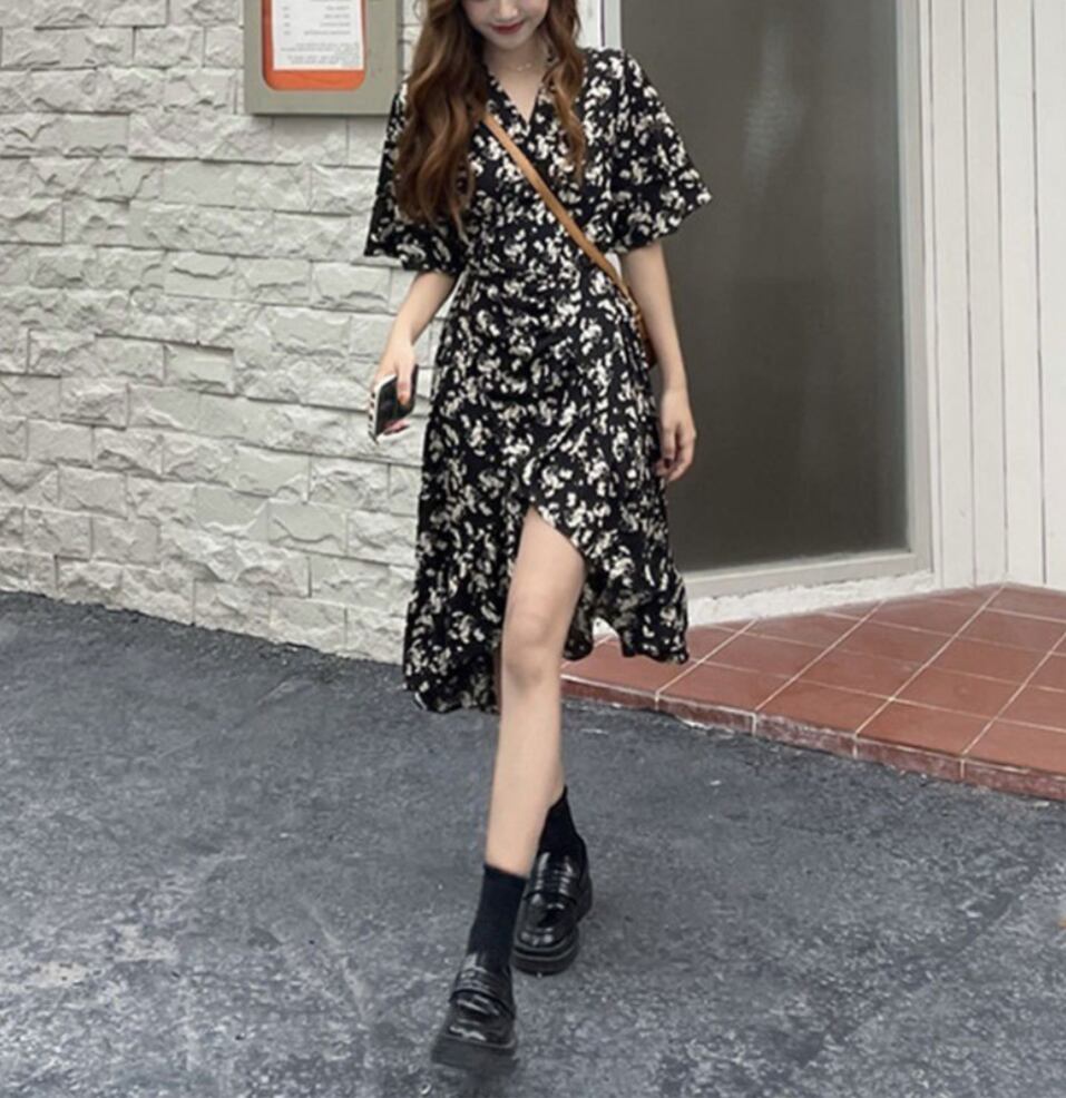 レディース ワンピース レディース 膝丈 膝下 半袖 5分袖 Vネック 襟なし フレア Aライン スリット ハイウエスト 大人可愛い きれいめ 上品 おしゃれ こなれ感 ガーリー 主役級 存在感 抜け感 都会的 ロマンティック 涼しげ 軽やか シック 花柄 フラワー 総柄 小花柄 夏 ママ デート お出かけ リゾート 旅行 海 プール レストラン ビーチ 女子会 休日 ショッピング 合コン コンパ カフェ ランチ オルチャン 楽ちん 美脚 脚長 プチプラ 普段使い 着回し モテ S M L XL 黒 ブラ