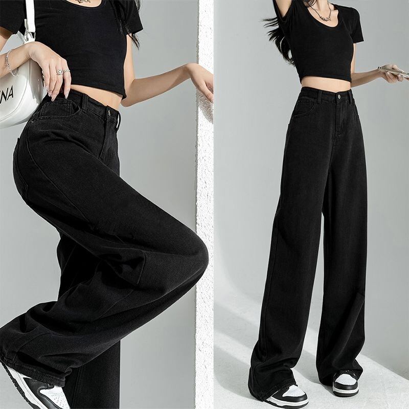 レディース パンツ ボトムス デニム ストレートパンツ ワイドパンツ 丈長 ワイド ストリート ハイウエスト シンプル カジュアル おしゃれ かっこいい こなれ感 ラフ マニッシュ ルーズ 存在感 ベーシック アクティブ 無地 春 秋 学生 デート お出かけ 旅行 公園 女子会 休日 ショッピング コンサート ライブ カフェ フェス ランチ コーデ 楽ちん 脚長 普段使い 着回し 定番 スタイルアップ S M L XL 2XL 大きいサイズ ゆったり 黒 ブラック モノトーン ベーシックカラー 大人カラー