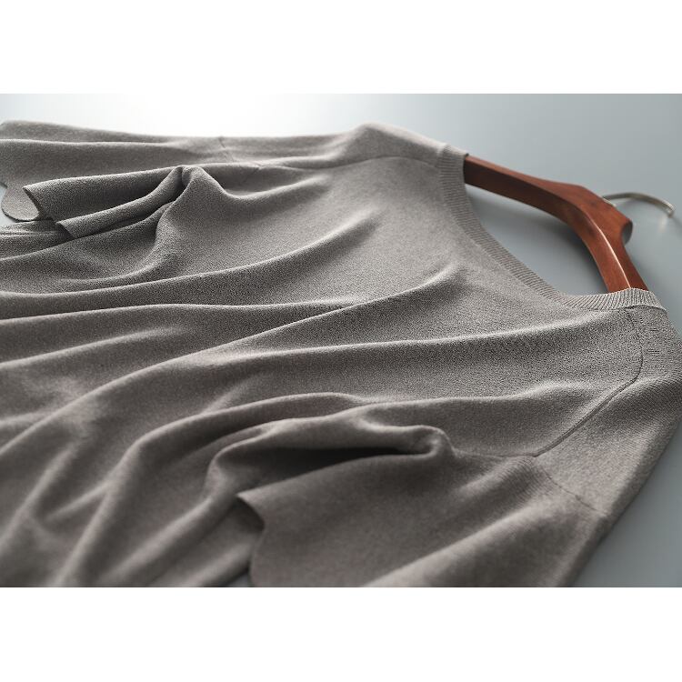 さらりとした生地感で夏にも快適に着られ、シンプルながら存在感のあるデザイン。