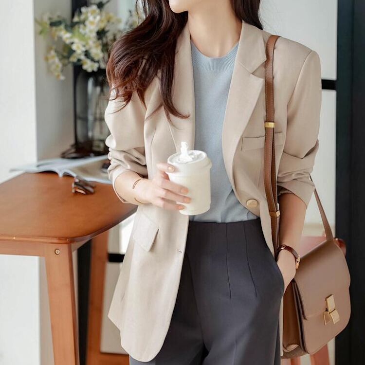 バックボタンがアクセントとなり、シンプルながらもこなれ感のある着こなしを叶えます。