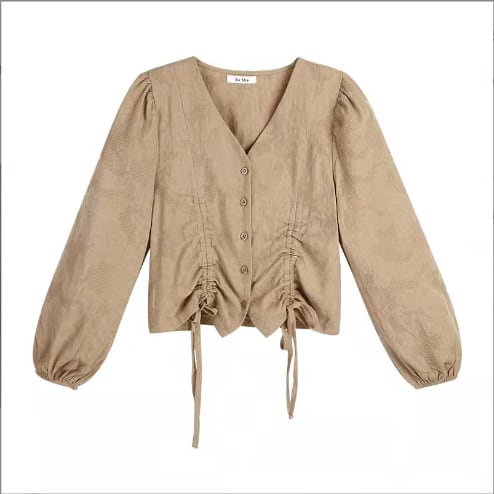 フェミニンな雰囲気漂う、前開きデザインの大人可愛いブラウス。