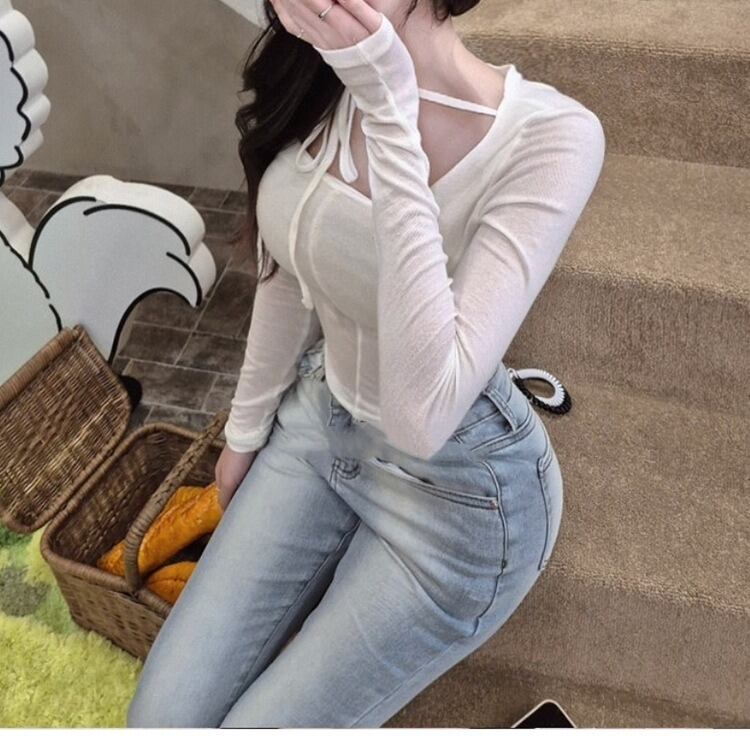 トップス カットソー レディース ショート 長袖 ラウンドネック タイト スリム スマート フェミニン かわいい カジュアル おしゃれ ガーリー ルーズ 個性的 存在感 ラブリー キュート 無地 春 秋 冬 学生 デート お出かけ 休日 ショッピング 脚長 普段使い 着回し トレンド インスタ映え ワンサイズ ホワイト ブラック ピンク バイオレット 定番カラー 大人カラー