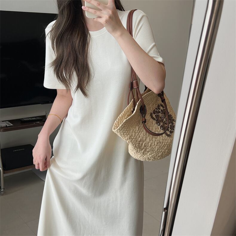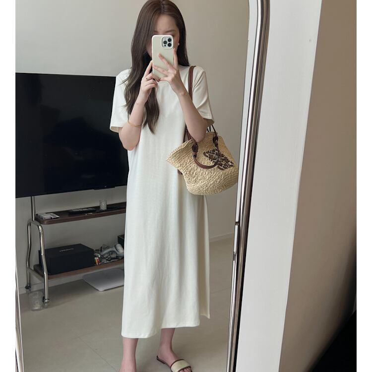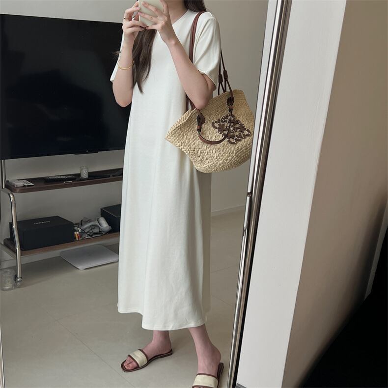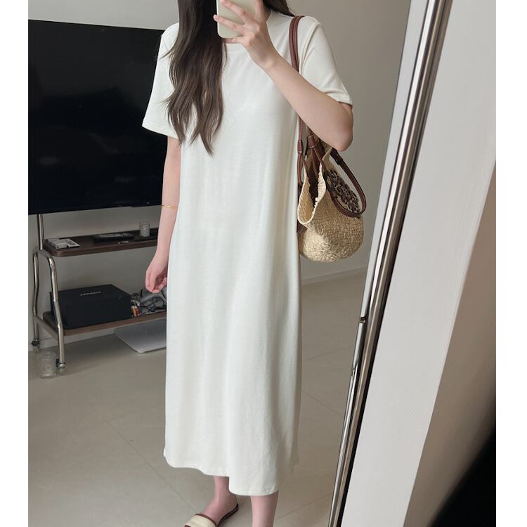 レディース ワンピース ルームウェア フレア ミモレ 半袖 ラウンドネック Aライン オーバーサイズ フェミニン ストリート かわいい 大人可愛い シンプル カジュアル 上品 おしゃれ こなれ感 ラフ 存在感 キュート クラシカル ベーシック リラックス 爽やか シック 無地 夏 ママ マタニティ デート お出かけ 旅行 公園 女子会 休日 ショッピング ランチ コーデ 楽ちん 体型カバー 普段使い 着回し 定番 M L ゆったり 白 ホワイト 黒 ブラック グレー ベーシックカラー 大人カラー