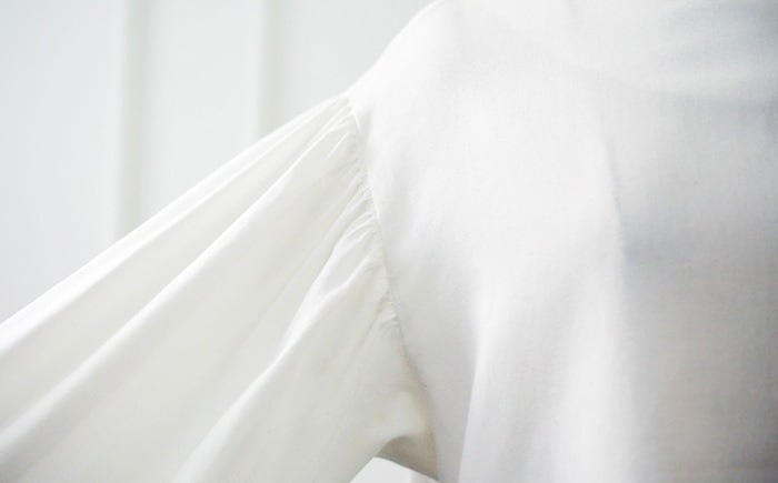 ふんわりとしたボリューム袖とドロップショルダーが特徴のレディースブラウスは、大人可愛い雰囲気を演出しながらも上品さを兼ね備えた一枚です。ノーカラーデザインで首元はすっきりと仕上がり、自然な抜け感をプラスしてくれます。