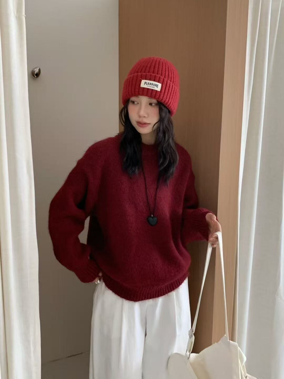 長袖のラウンドネックデザインは、秋冬のオフィスや通勤、カジュアルなお出かけにピッタリ。