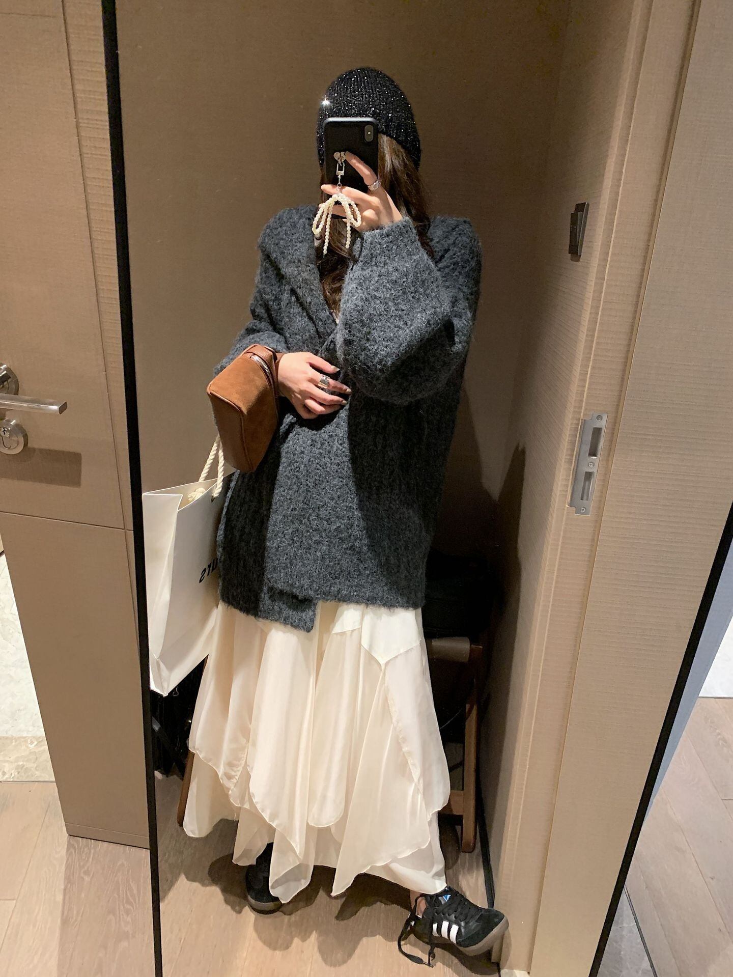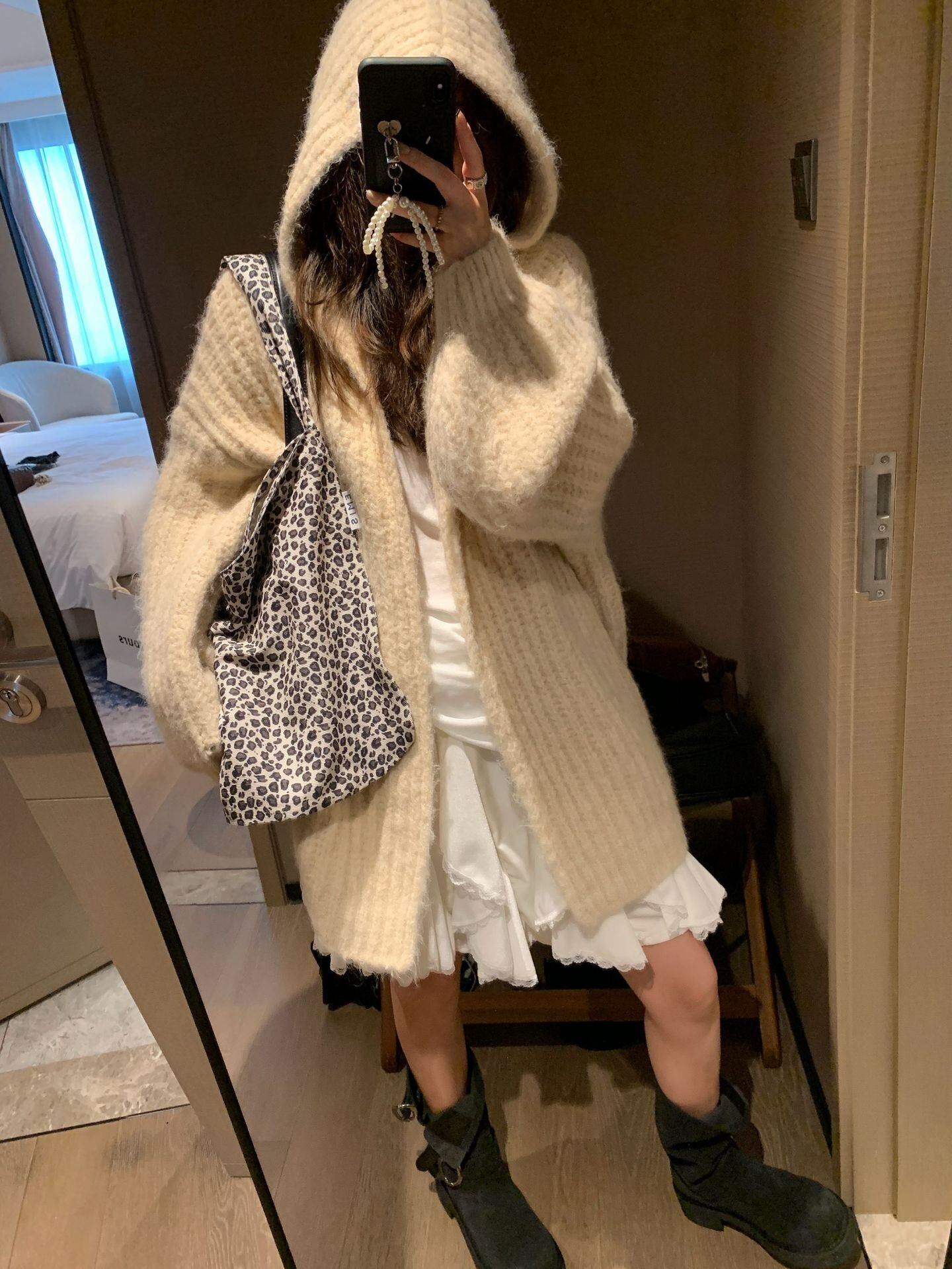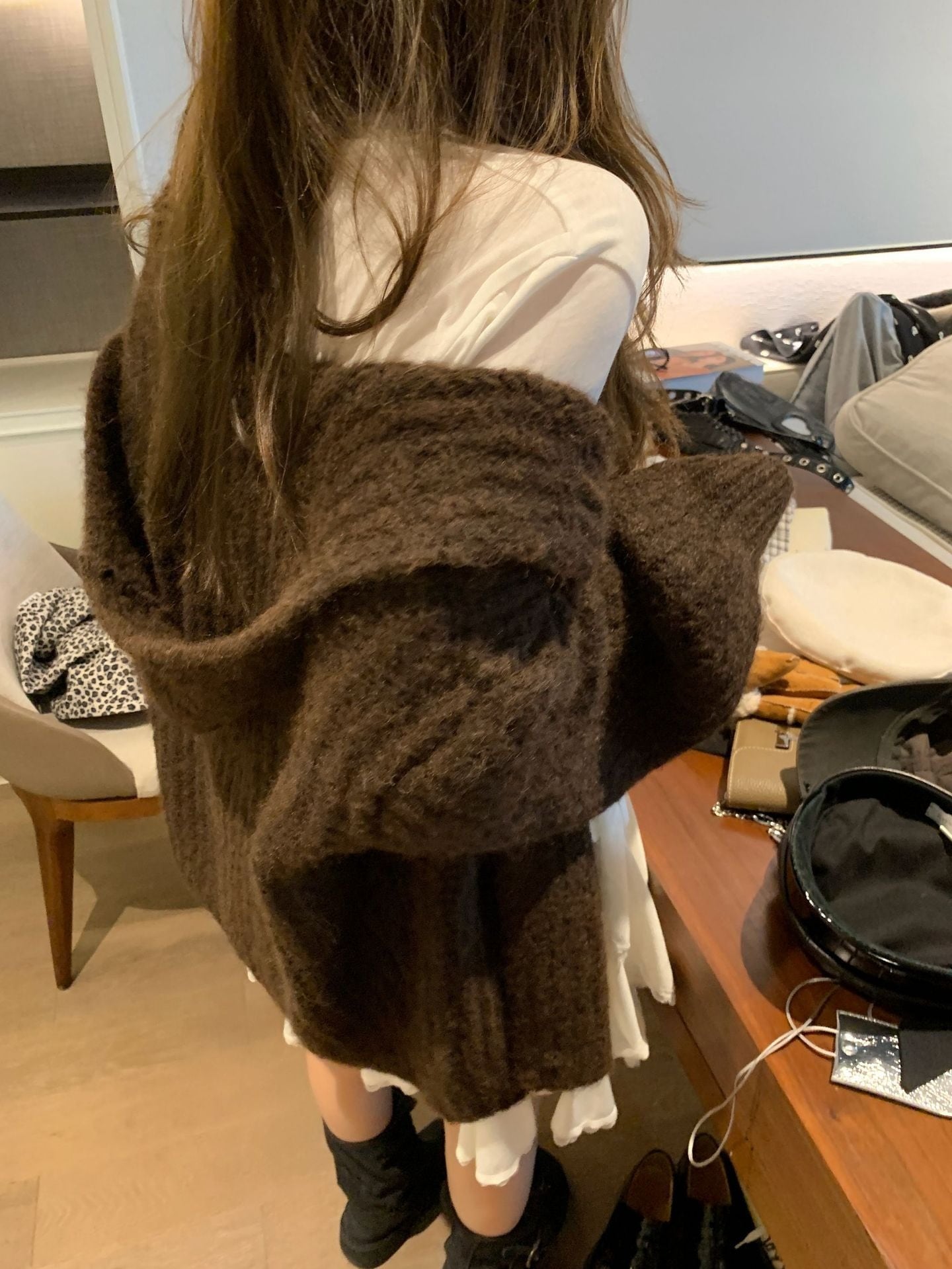 アウター カーディガン コート ミディアム ミディアム丈 フード付き 袖あり 長袖 ニット かわいい 大人可愛い きれいめ シンプル 大人 上品 おしゃれ お洒落 大人可愛い 大人女子 エレガント フォーマル 無地 秋 冬 20代 30代 レディース 女性用 通勤 学生 通学 デート お出かけ 女子会 休日 着回し 普段使い 韓国 韓国系 オルチャン 暖かい 防寒 ワンサイズ ダークグレー ブラウン ホワイト 定番カラー 大人カラー