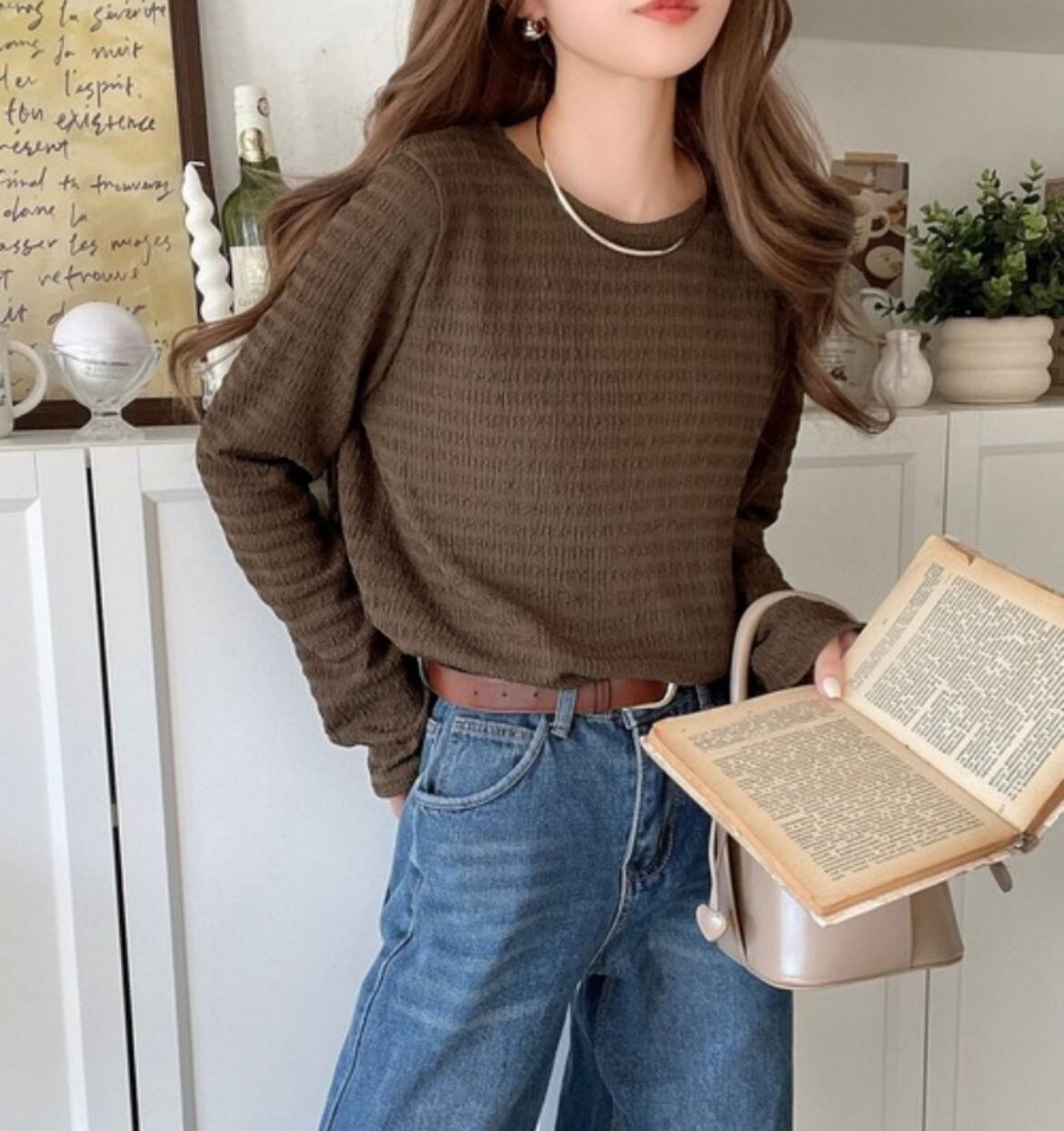 トップス シャツ ブラウス カットソー プルオーバー レディース 長袖 クルーネック ジャガード きれいめ シンプル カジュアル 上品 おしゃれ こなれ感 ラフ ガーリー ルーズ モード系 とろみ感 抜け感 ベーシック アクティブ 無地 春 秋 冬 オフィス OL 通勤 デート お出かけ イベント 女子会 休日 ショッピング カフェ ランチ 韓国 オルチャン コーデ 楽ちん 普段使い 着回し レイヤード 清楚 トレンド S M L XL ブラック オフホワイト ブラウン ベージュ イエロー