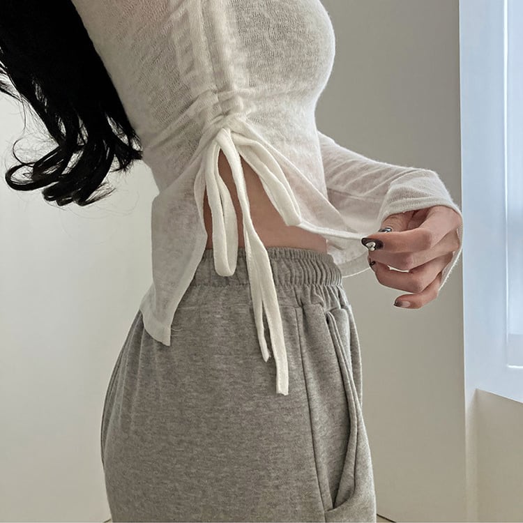 リボンやスリット、ドロストディテールがほどよいアクセントとなり、シンプルながら存在感のある一枚。