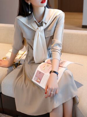 レディース ワンピース レディース 膝上 7分袖 ハイネック 襟付き セミフレア Aライン ベルト ウエストマーク ハイウエスト 前開き 肌見せ きれいめ シンプル 上品 おしゃれ かっこいい クール モード系 存在感 クラシカル ナチュラル 無地 総柄 秋 ビジネス OL デート お出かけ イベント 旅行 レストラン 女子会 休日 高原 ホテル ガーデン ショッピング 発表会 コンサート 合コン コンパ カフェ 婚活 モノトーン ランチ 韓国 オルチャン S M L XL 2XL 黒 ブラック ベージュ
